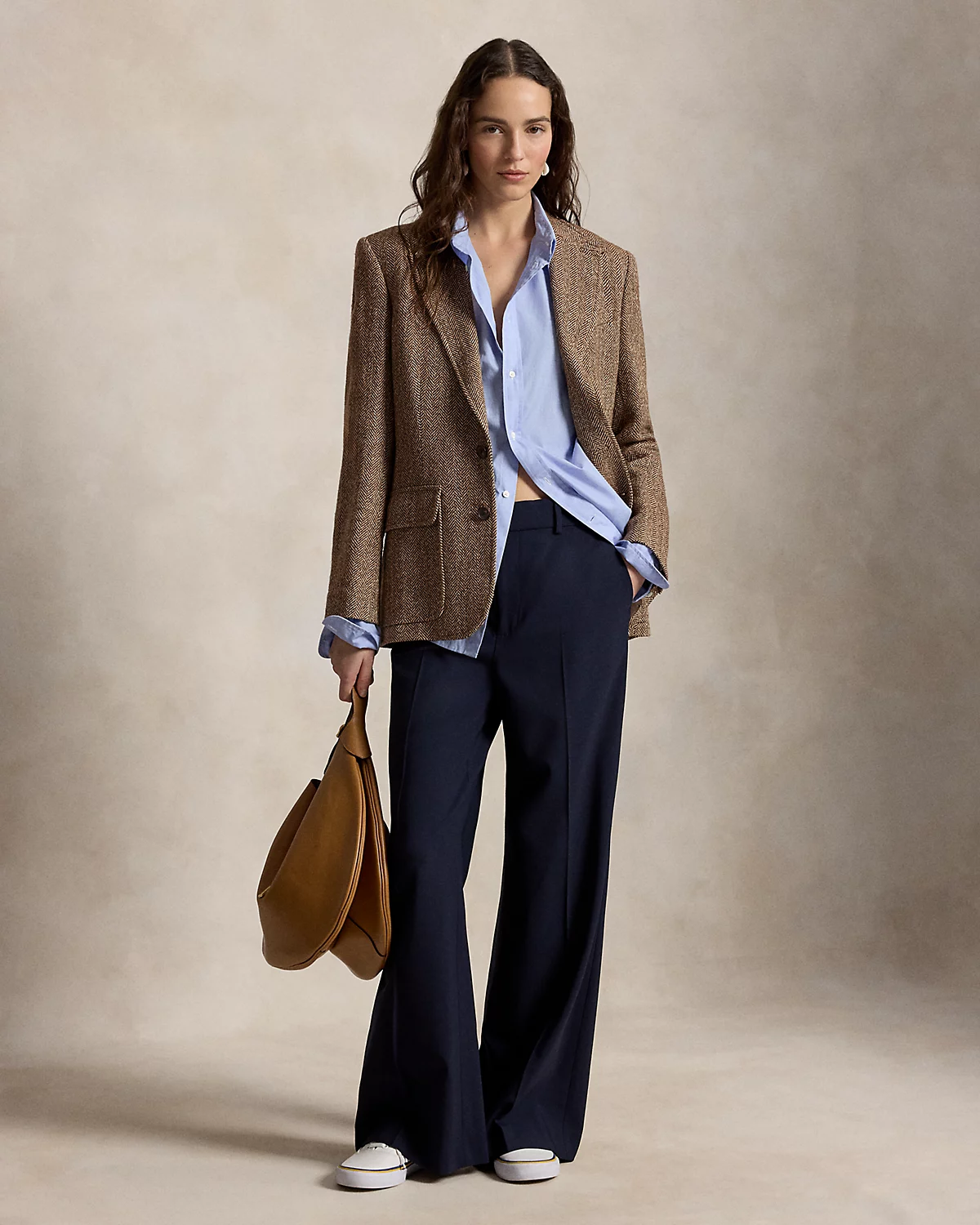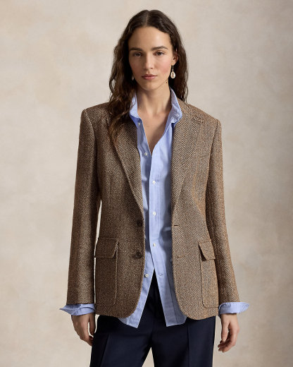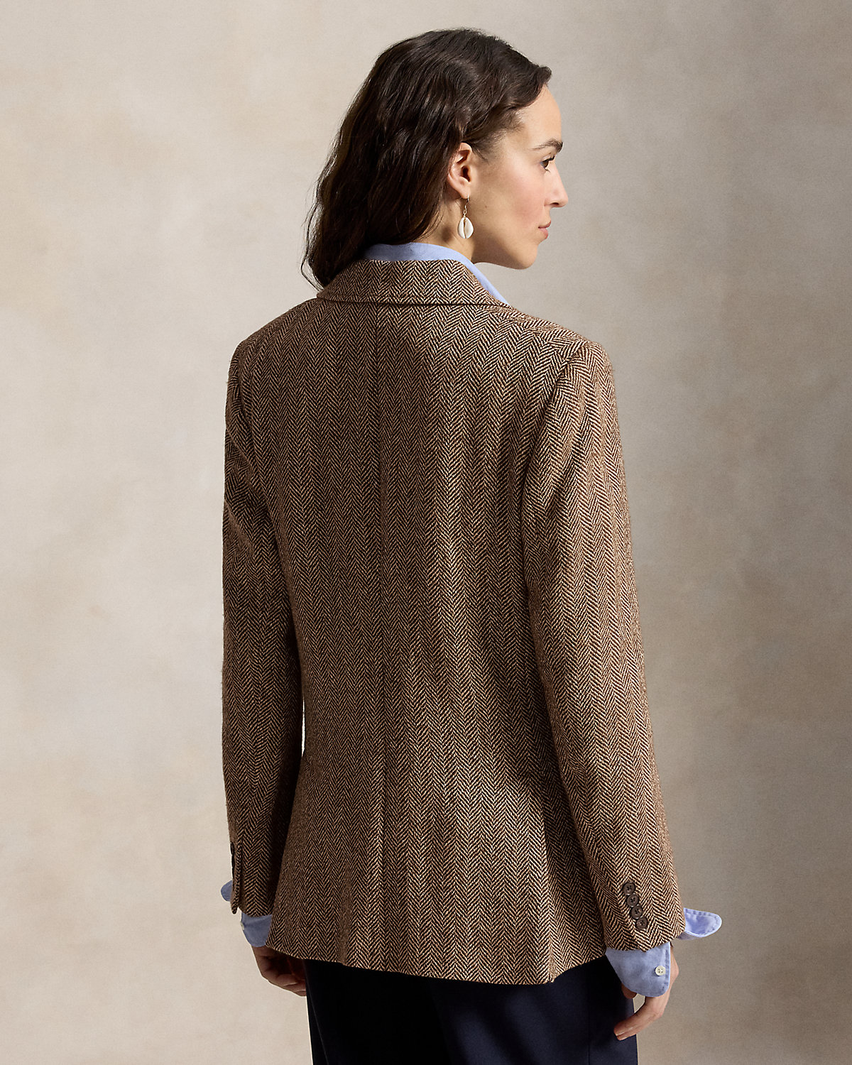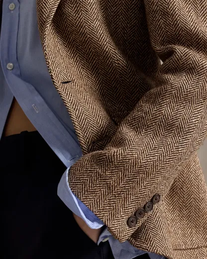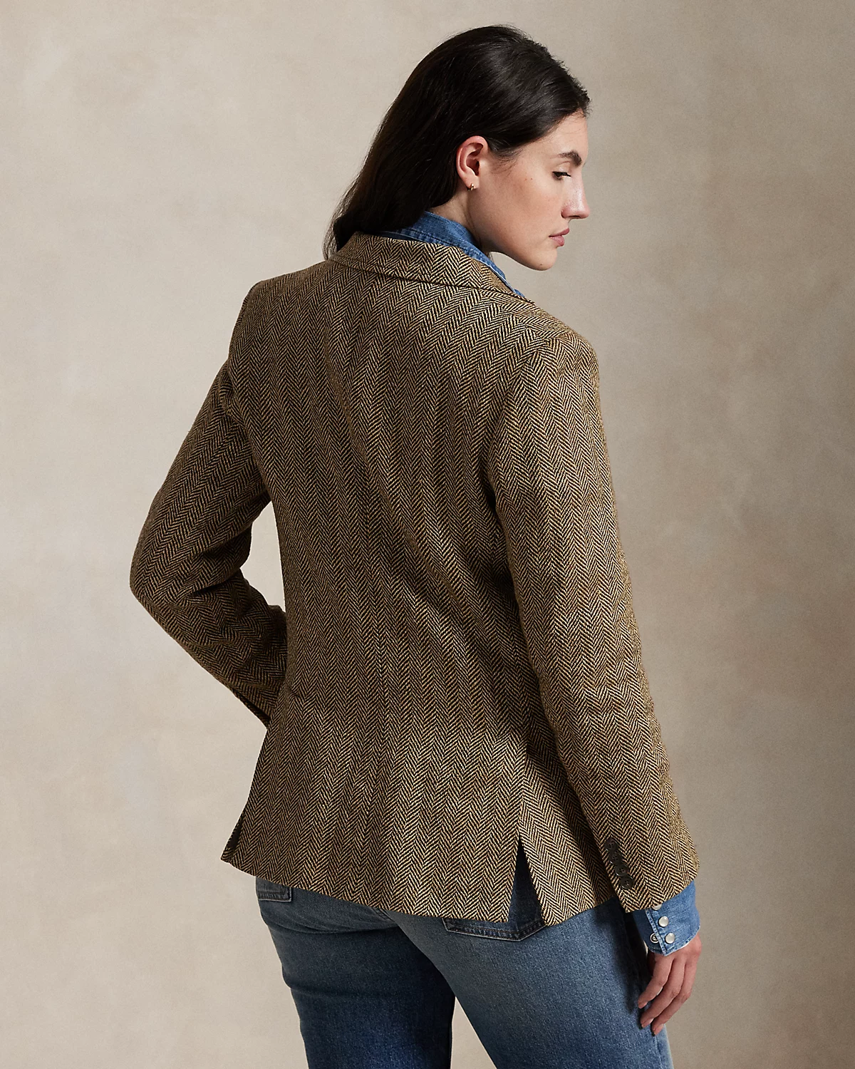 Featuring a timeless herringbone pattern, this blazer is masterfully crafted in Portugal with a luxe blend of Italian-spun yarn. A sophisticated staple, it’s enhanced with traditional tailoring details, including waist darts and princess seams.