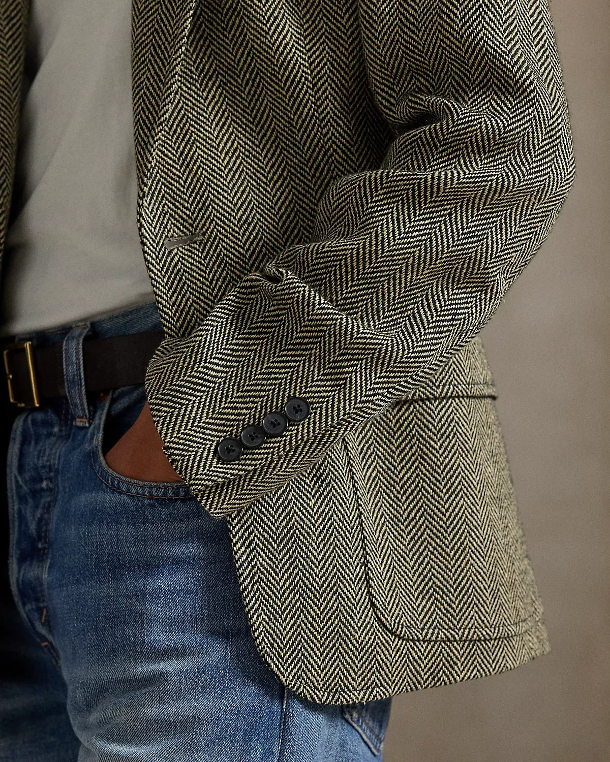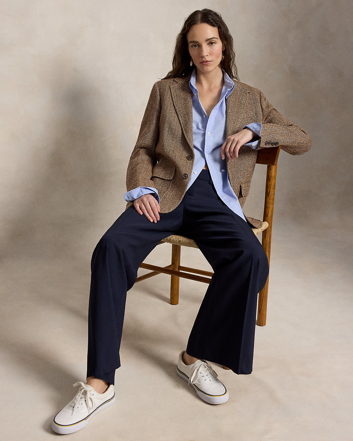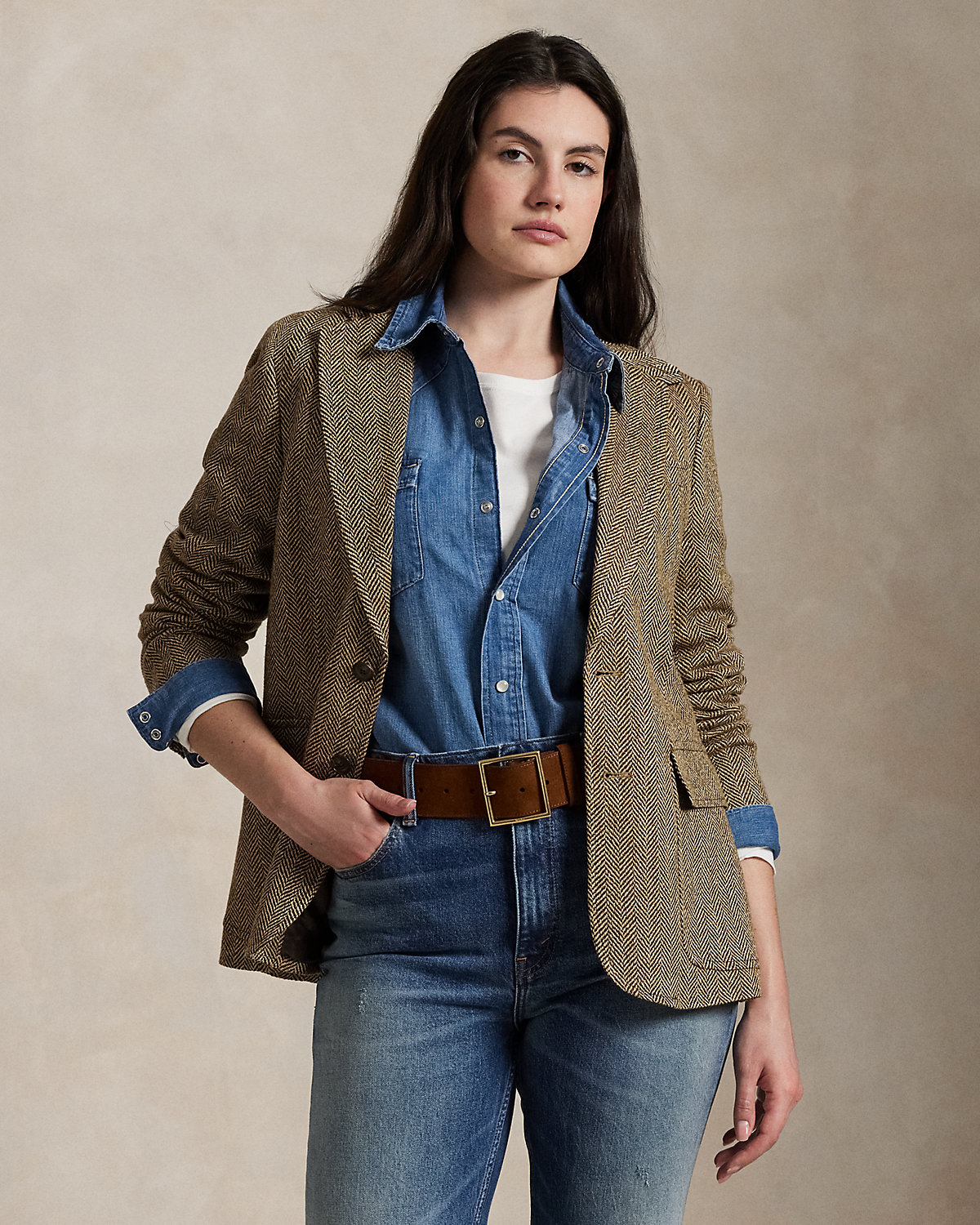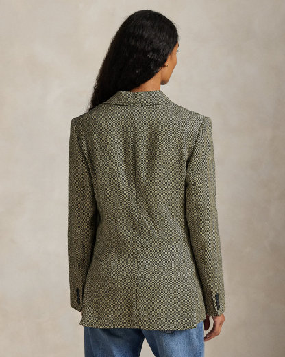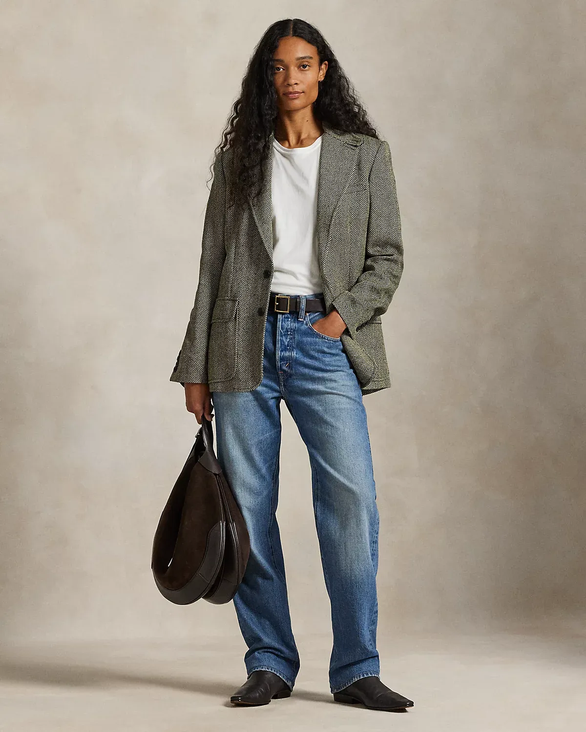Featuring a timeless herringbone pattern, this blazer is masterfully crafted in Portugal with a luxe blend of Italian-spun yarn. A sophisticated staple, it’s enhanced with traditional tailoring details, including waist darts and princess seams.