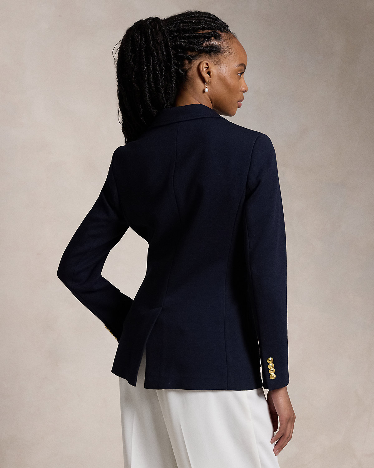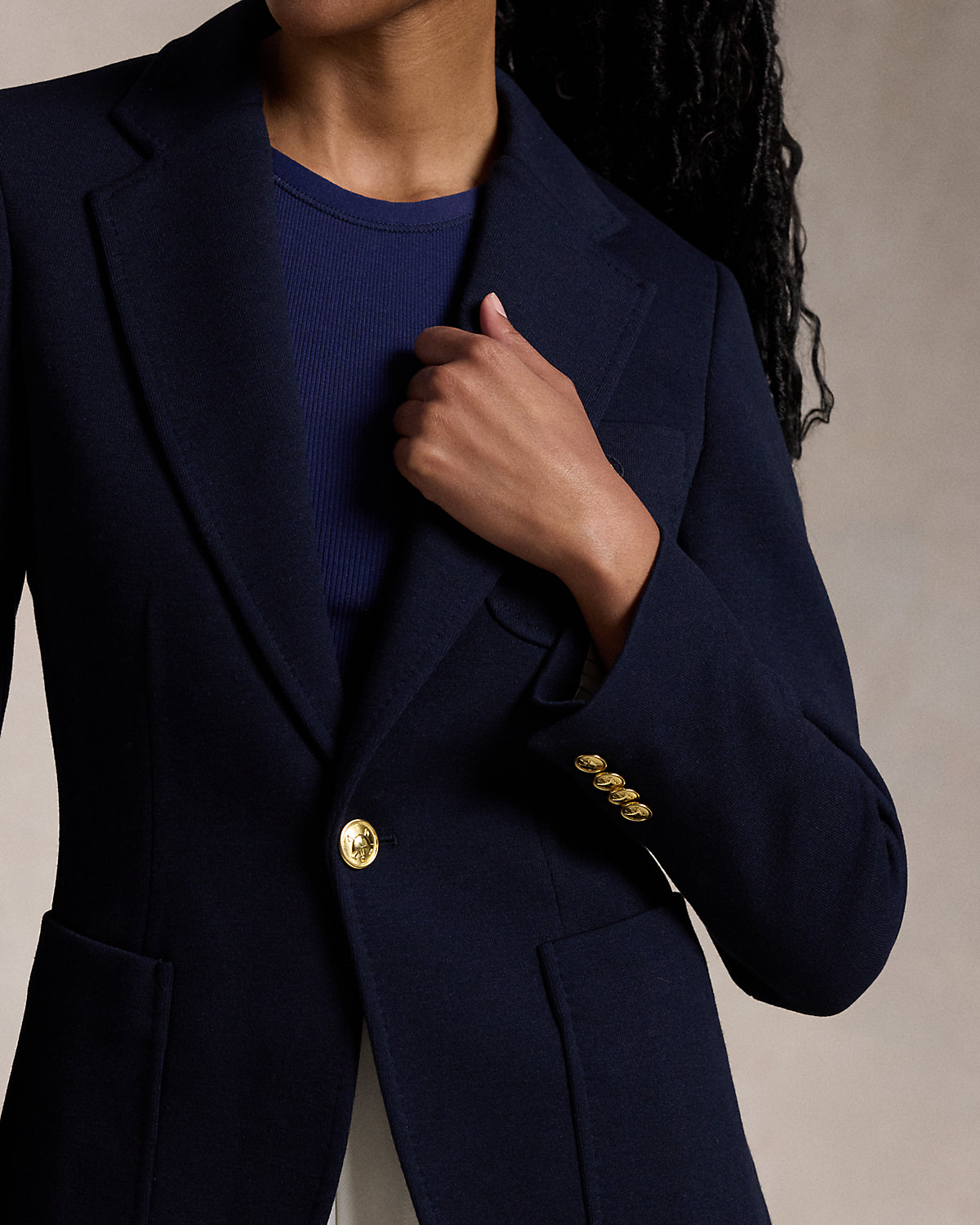 Made with a stretch-wool blend, this single-div blazer is cut for a slim silhouette and showcases our signature crest patch at the left chest pocket.