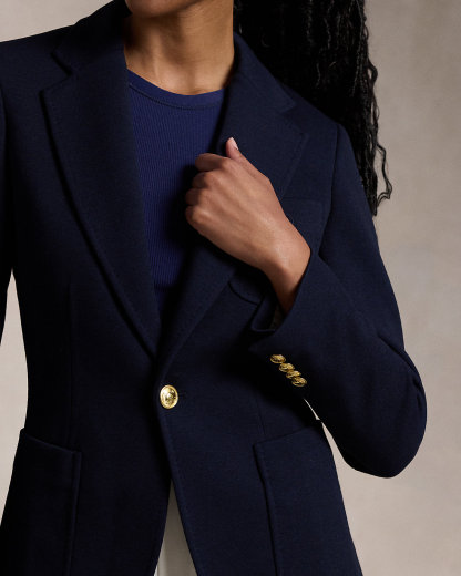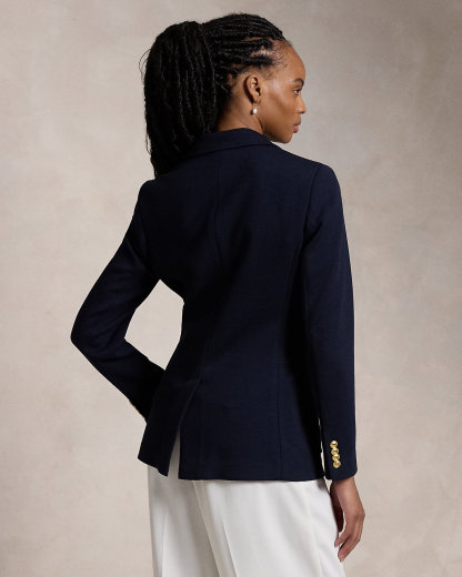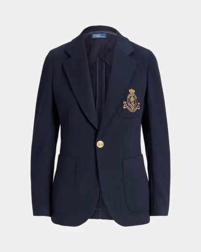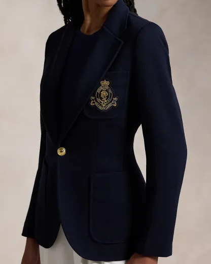 Single-Breasted Logo-Crest Knit Blazer