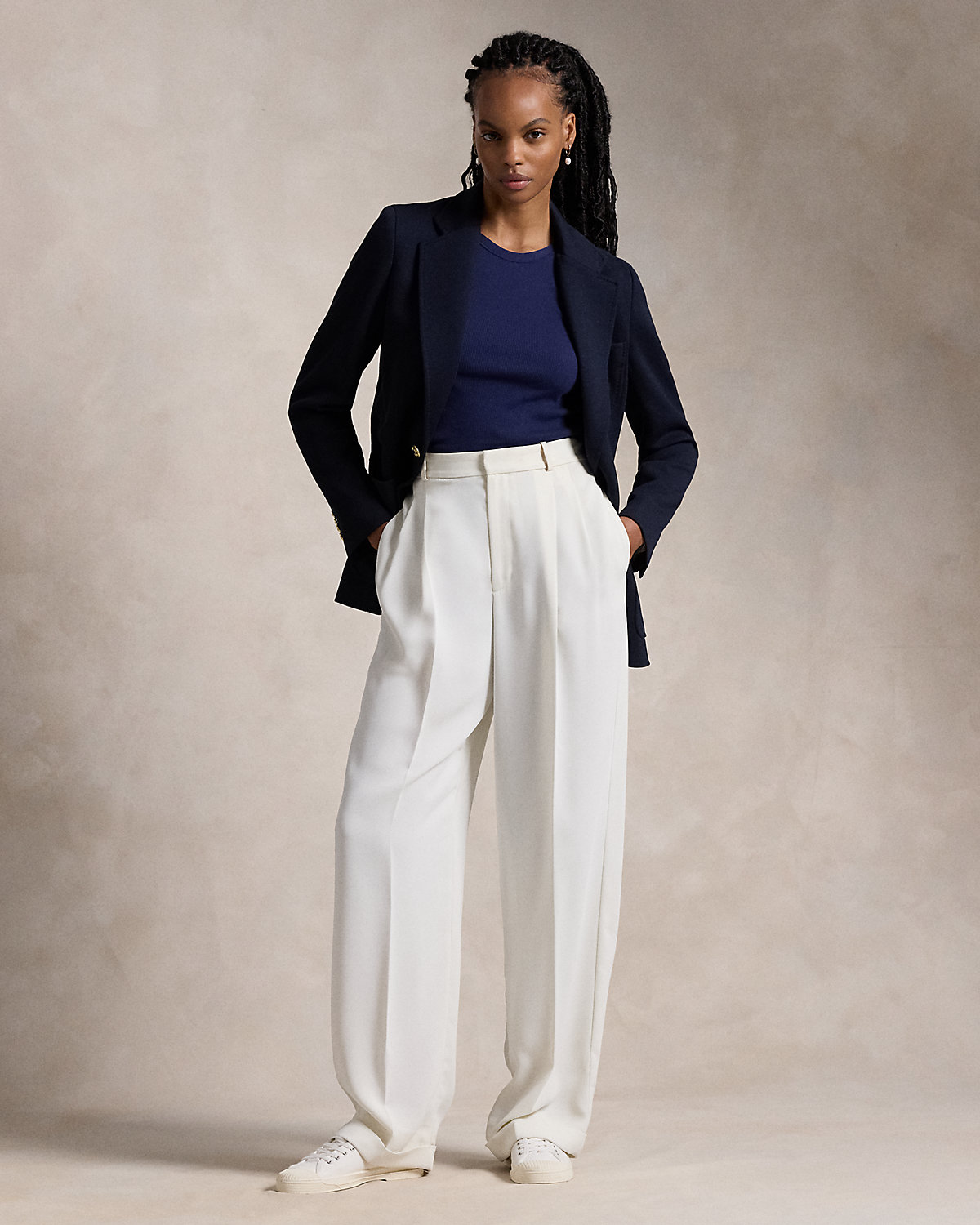 - Notch lapels. One-div silhouette.