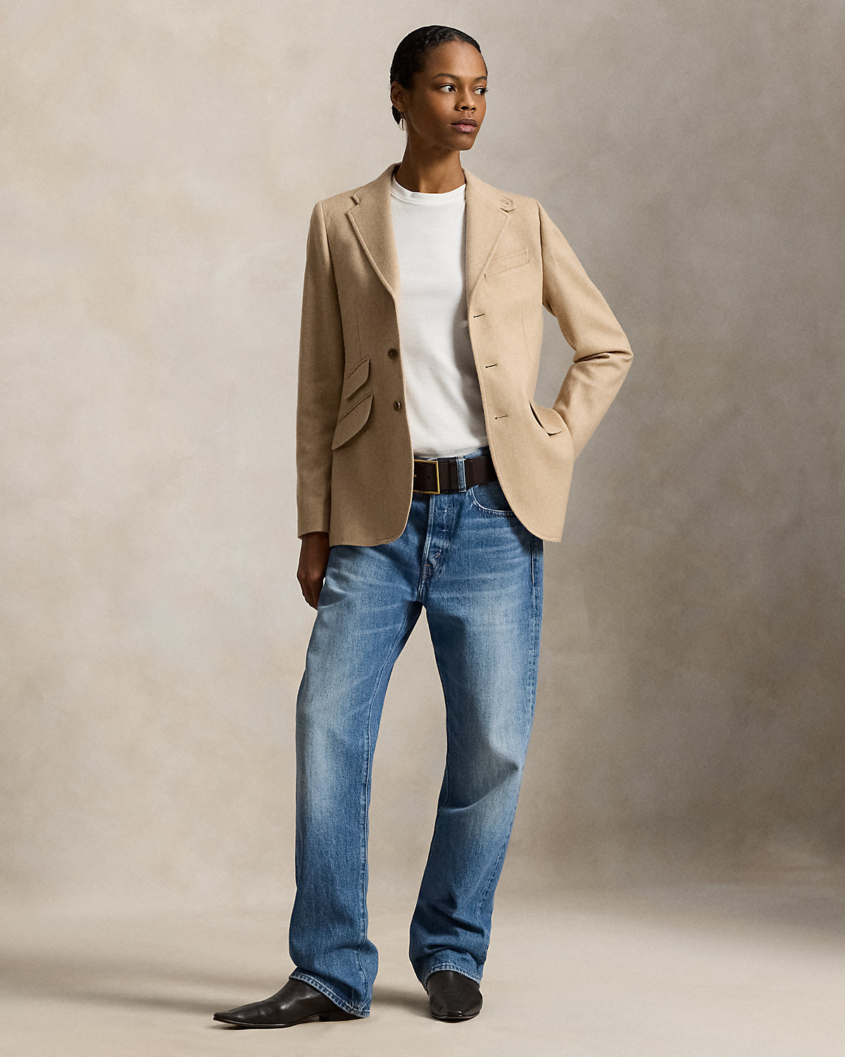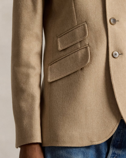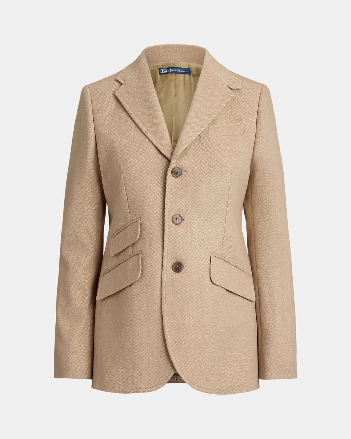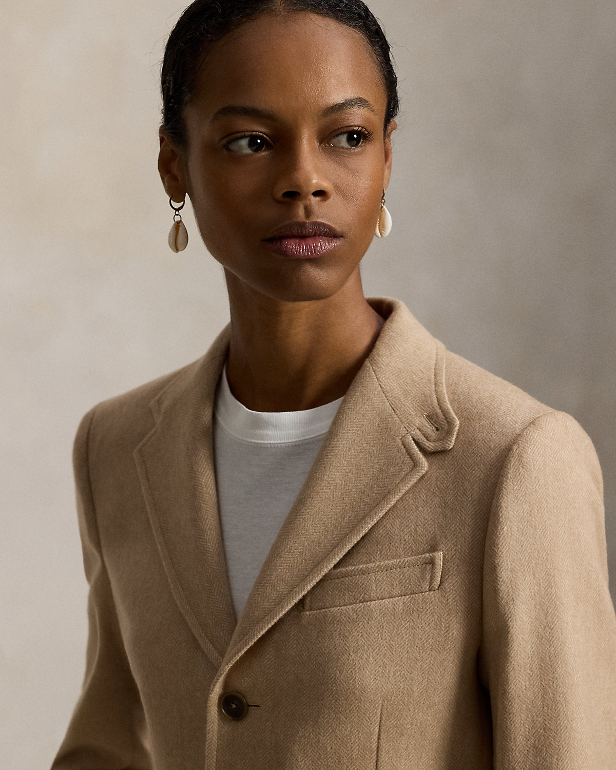 Expertly crafted with Italian wool, this herringbone hacking blazer features a single-breasted silhouette with classic notch lapels and menswear-inspired pocketing.