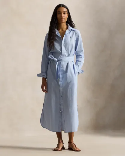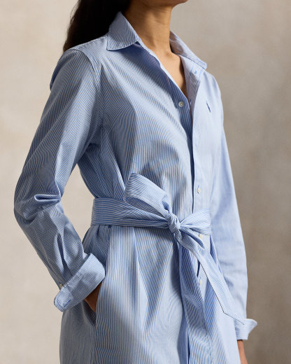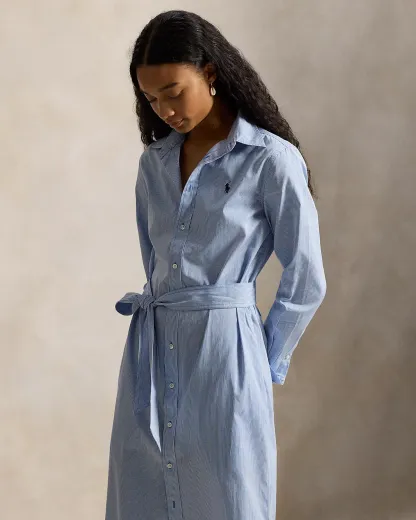 Belted Striped Cotton Shirtdress