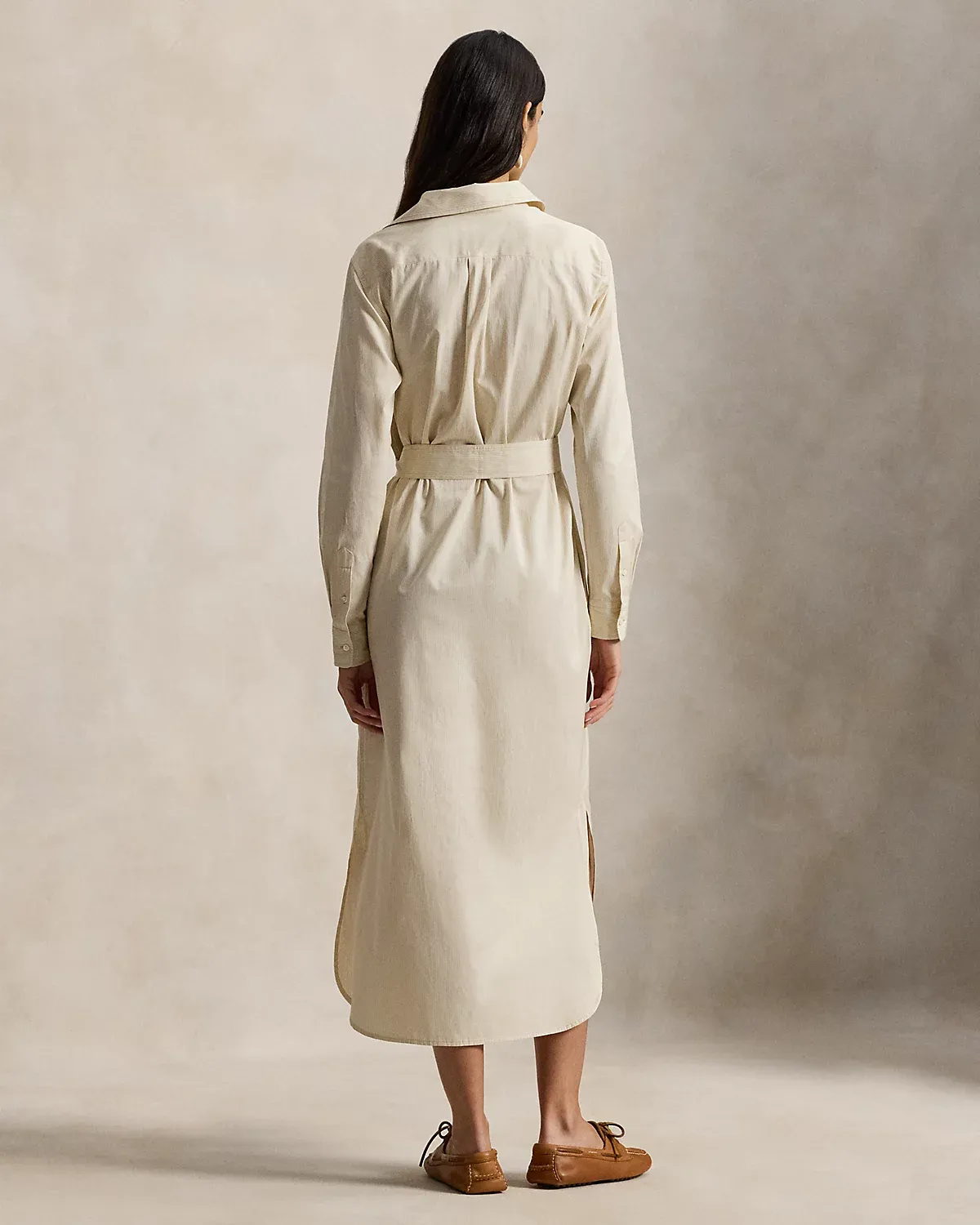 - Box-pleated back yoke. Shirttail hem. Unlined. Comes with a self-belt.