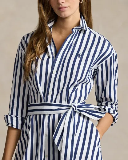 This striped cotton shirtdress is designed in an A-line silhouette and finished with our signature embroidered Pony at the left chest. A removable self-belt allows for versatility in styling and waist definition.
