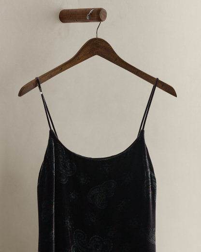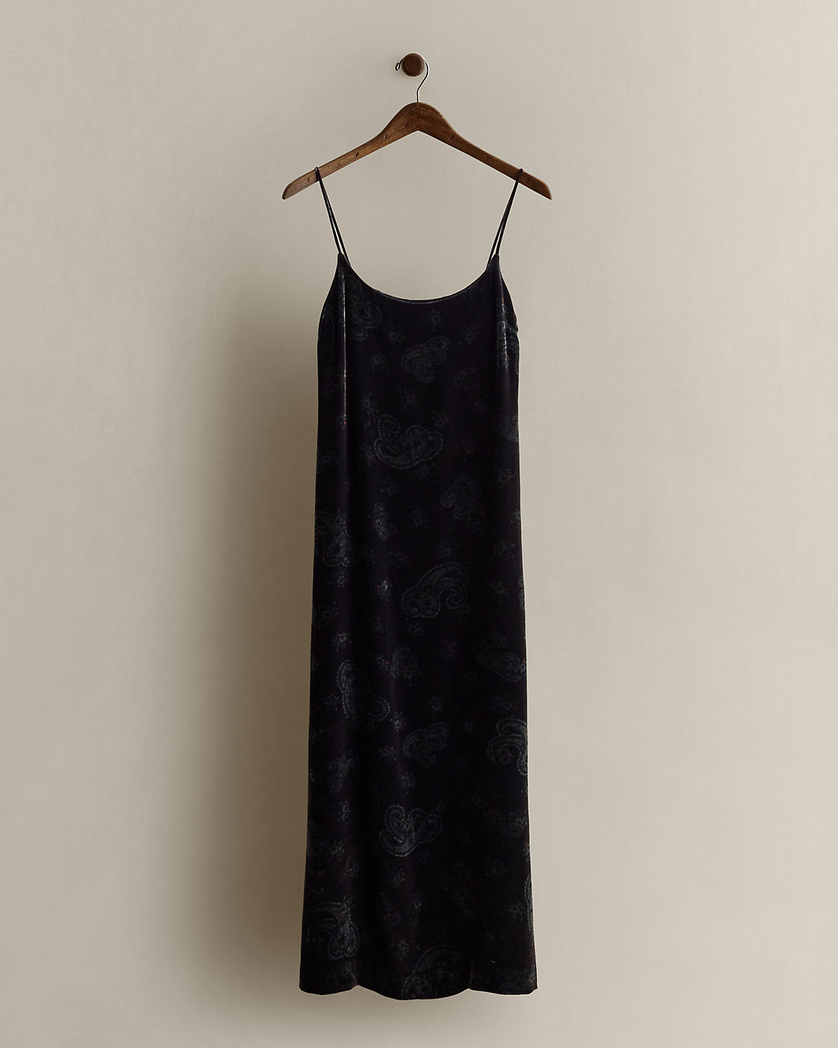 Circa 1994. Part of the women’s Ralpthth Lauren Ralph collection. Velvet dress with spaghetti straps and a tonal paisley motif. Us size 4 has a 53" back body length, a 15" chest, and a 15" waist.