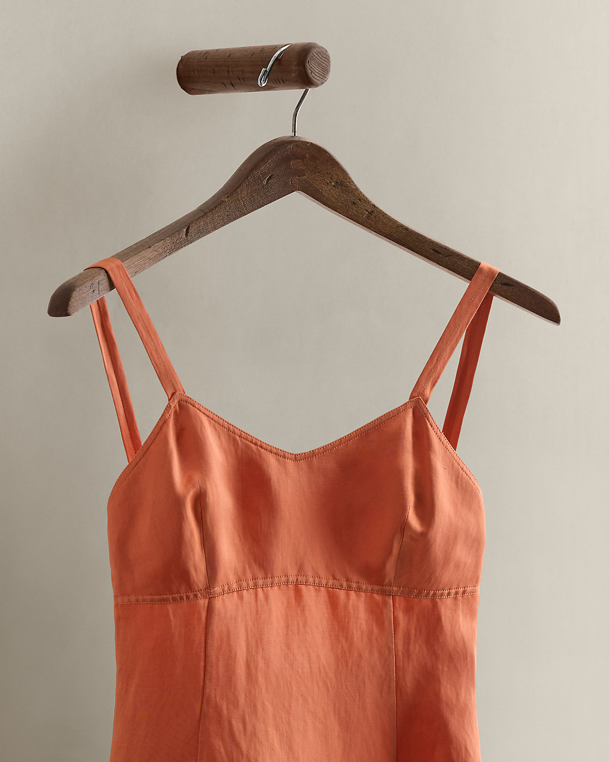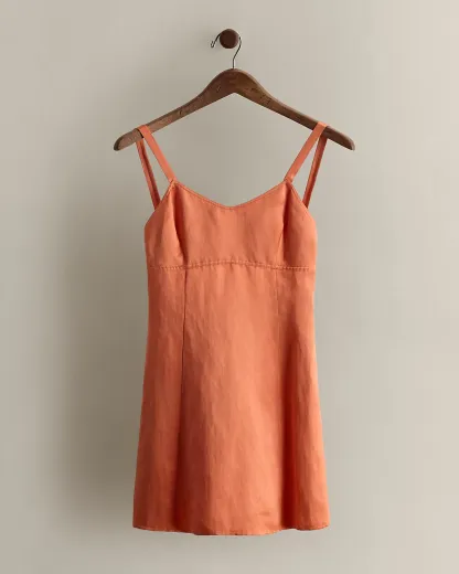Circa 1996. Part of the women’s Ralph collection. V-neckline linen-blend dress with spaghetti straps and a scoopback silhouette. US size 2 has a 30.5" back body length and a 13" chest.
