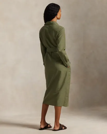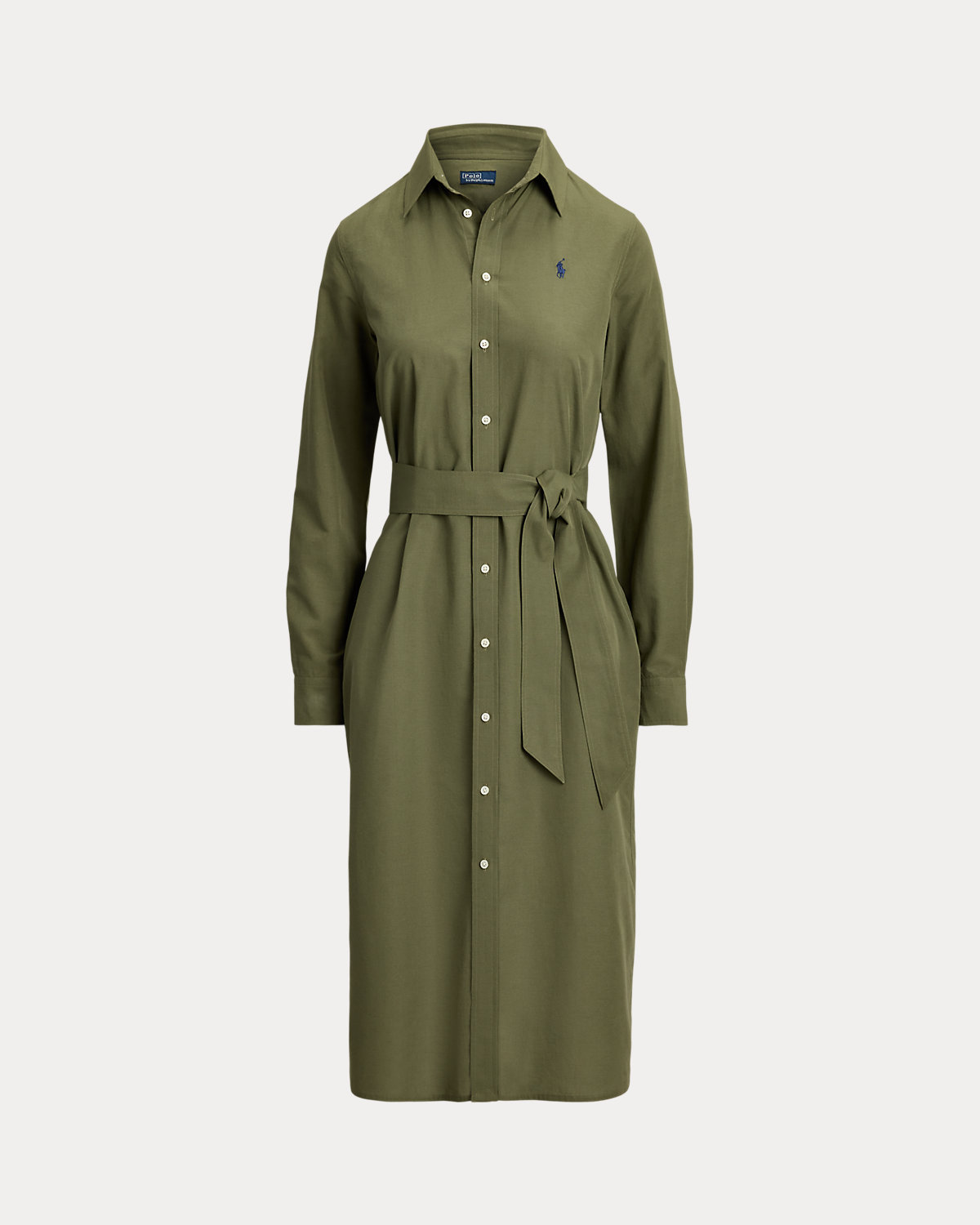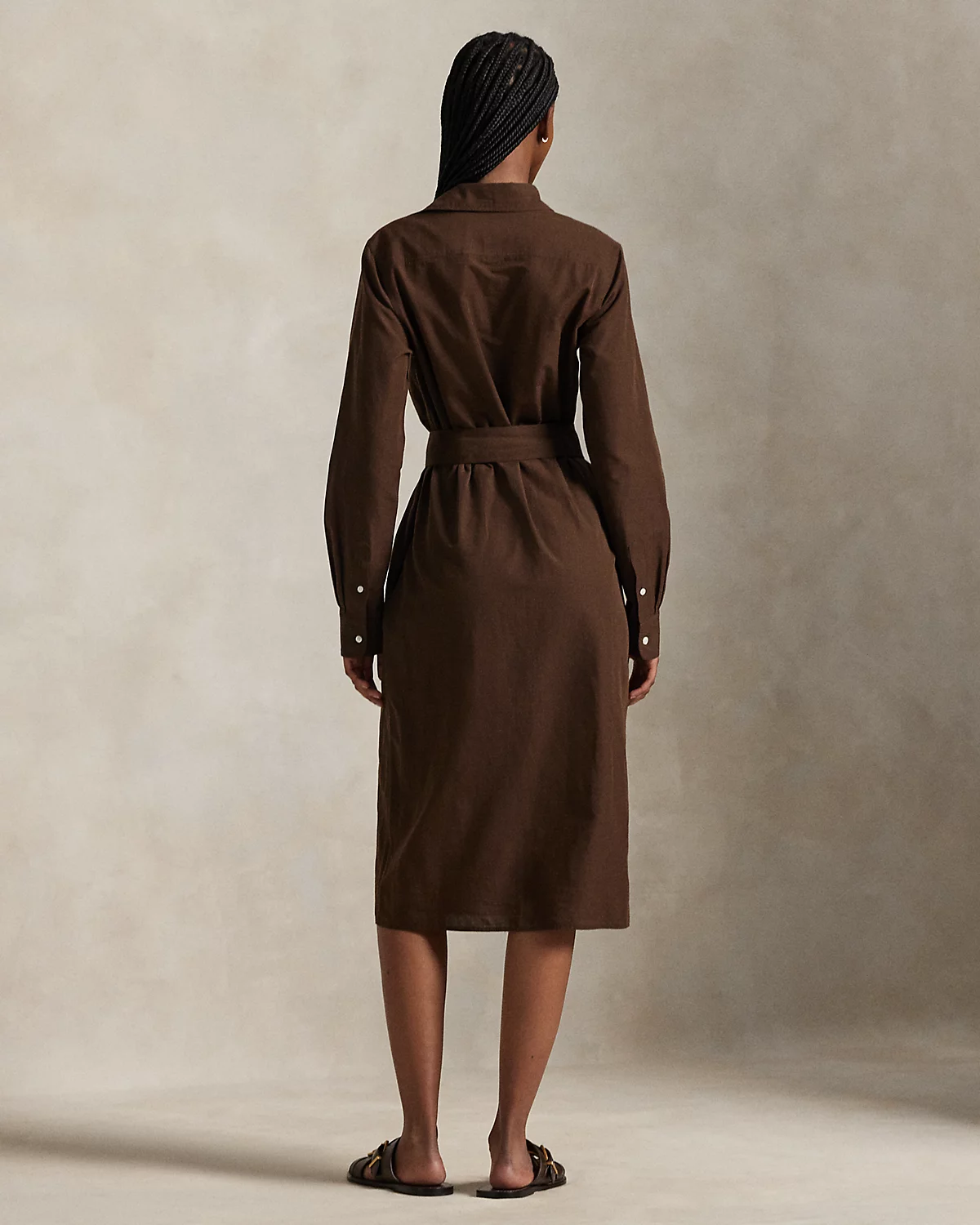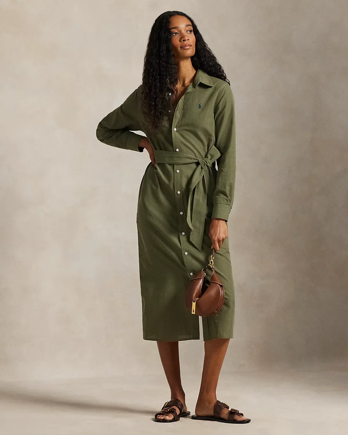 Woven with a breathable cotton-and-linen blend, this timeless shirtdress features a straight silhouette with side on-seam pockets, a casual self-belt, and our embroidered Pony at the left chest.