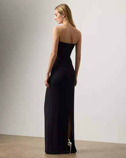 Distinguished by its strapless column silhouette, the Shelly embodies Ralpthth Lauren’s commitment to timeless luxury. Crafted in Italy, this version’s refined cady fabrication is made with the highest quality silk crepe yarns for a classic yet modern look. An interior bustier construction offers a flattering, supportive fit, while a center back skirt slit affords ease of movement.