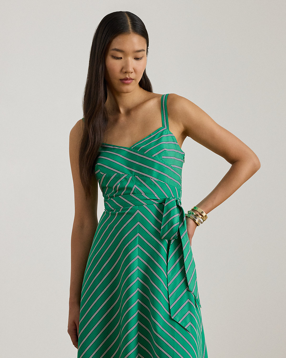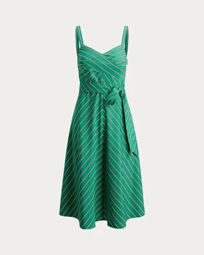 Yarn-dyed stripes and a belted waist accentuate the fit-and-flare silhouette of this sleeveless dress, which is crafted with lightweight cotton broadcloth.