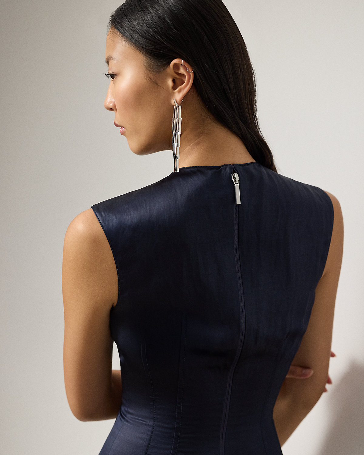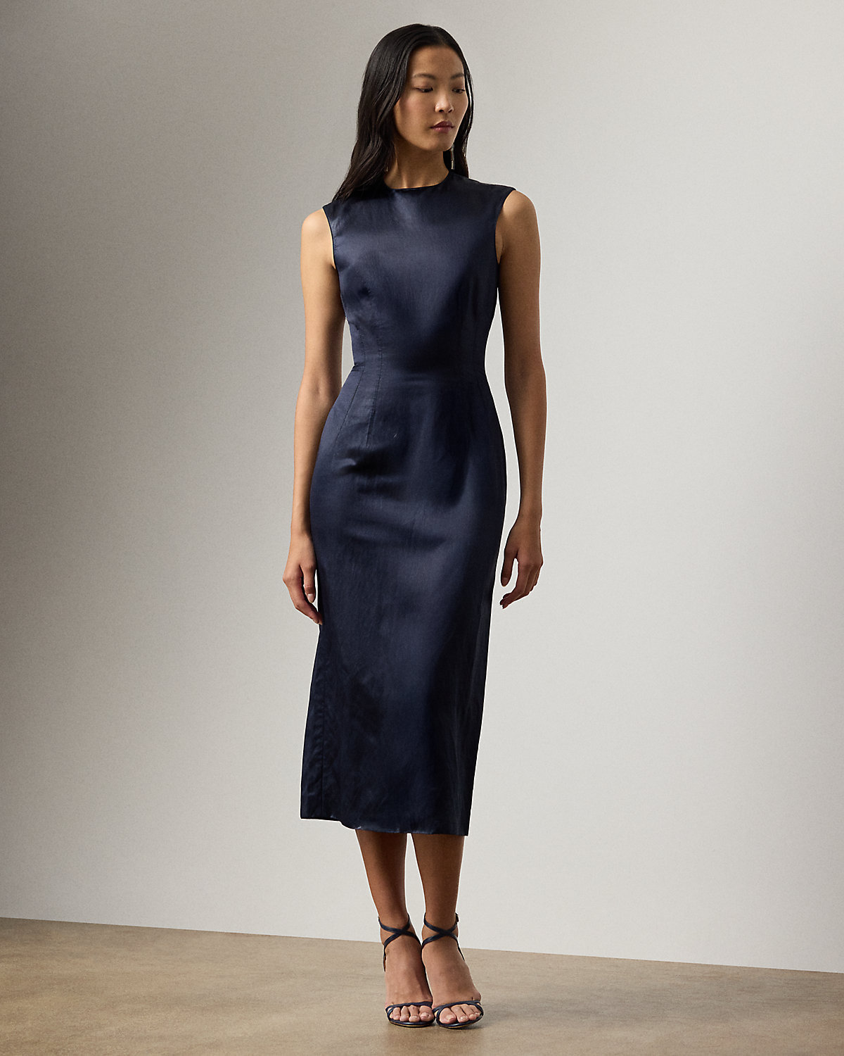 With its jewel neckline, extended shoulder, and sheath silhouette, the Vlada embodies Ralpthth Lauren’s ability to create luxurious styles that are both modern and timeless. Beautiful in its simplicity, this cocktail dress is made from a compact ramie blend that’s specially treated with a cintz finish, creating a fabric that affords a natural hand feel while displaying an elegant, lacquer-like shine. Topstitching down the bodice emphasizes the waistline for a flattering figure.