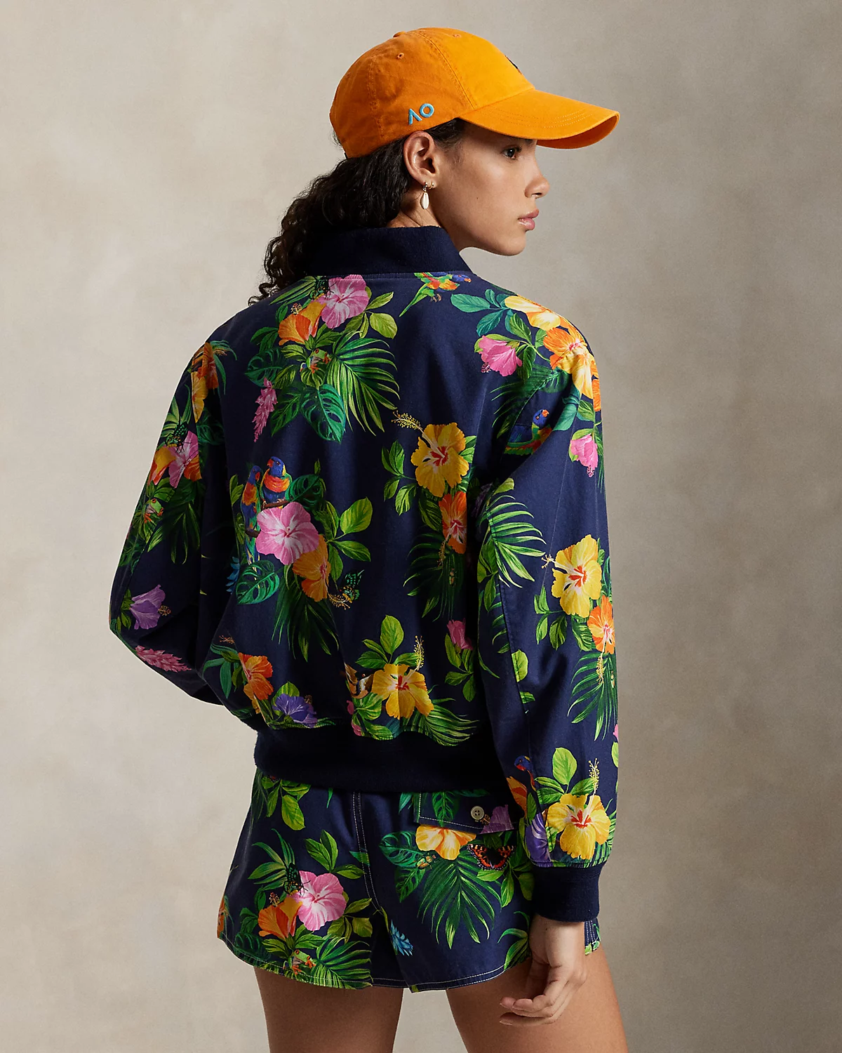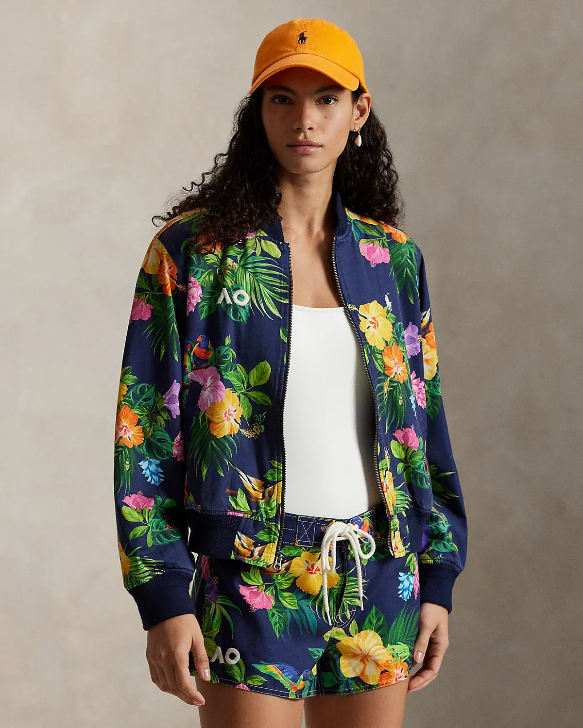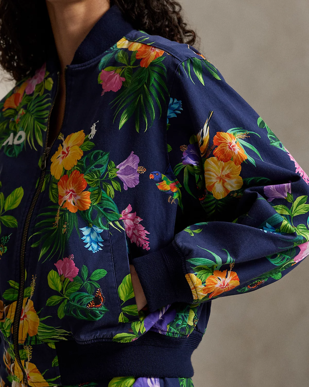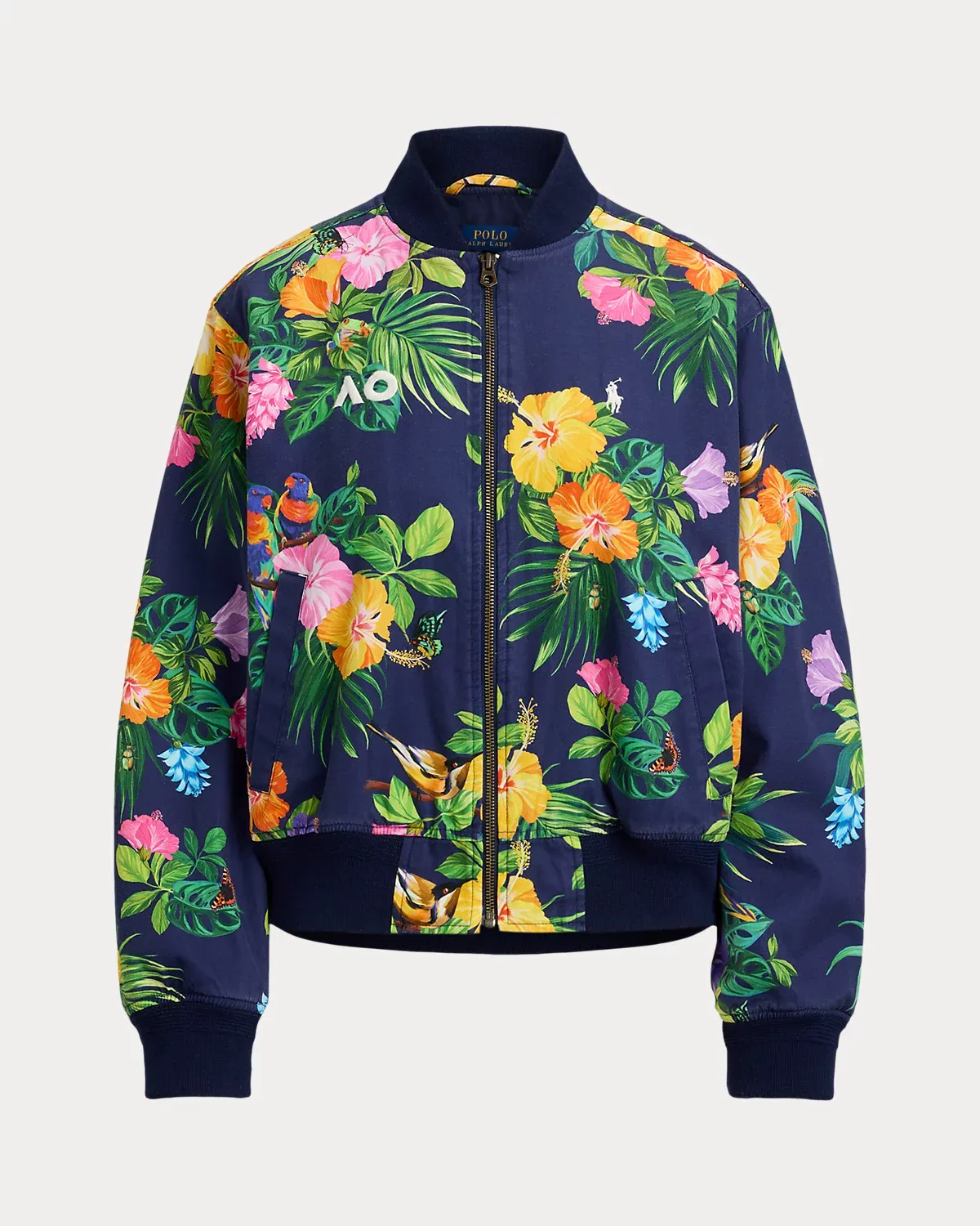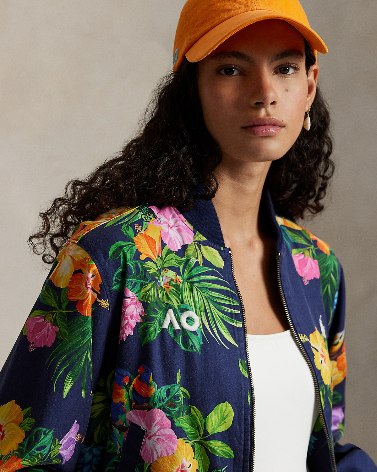 Part of our commemorative Australian Open capsule collection for 2026, this cotton twill baseball jacket celebrates the iconic tournament’s location with a vibrant print featuring colorful hibiscus flowers. It’s embroidered with the official Australian Open logo and Ralpthth Lauren’s signature Pony.