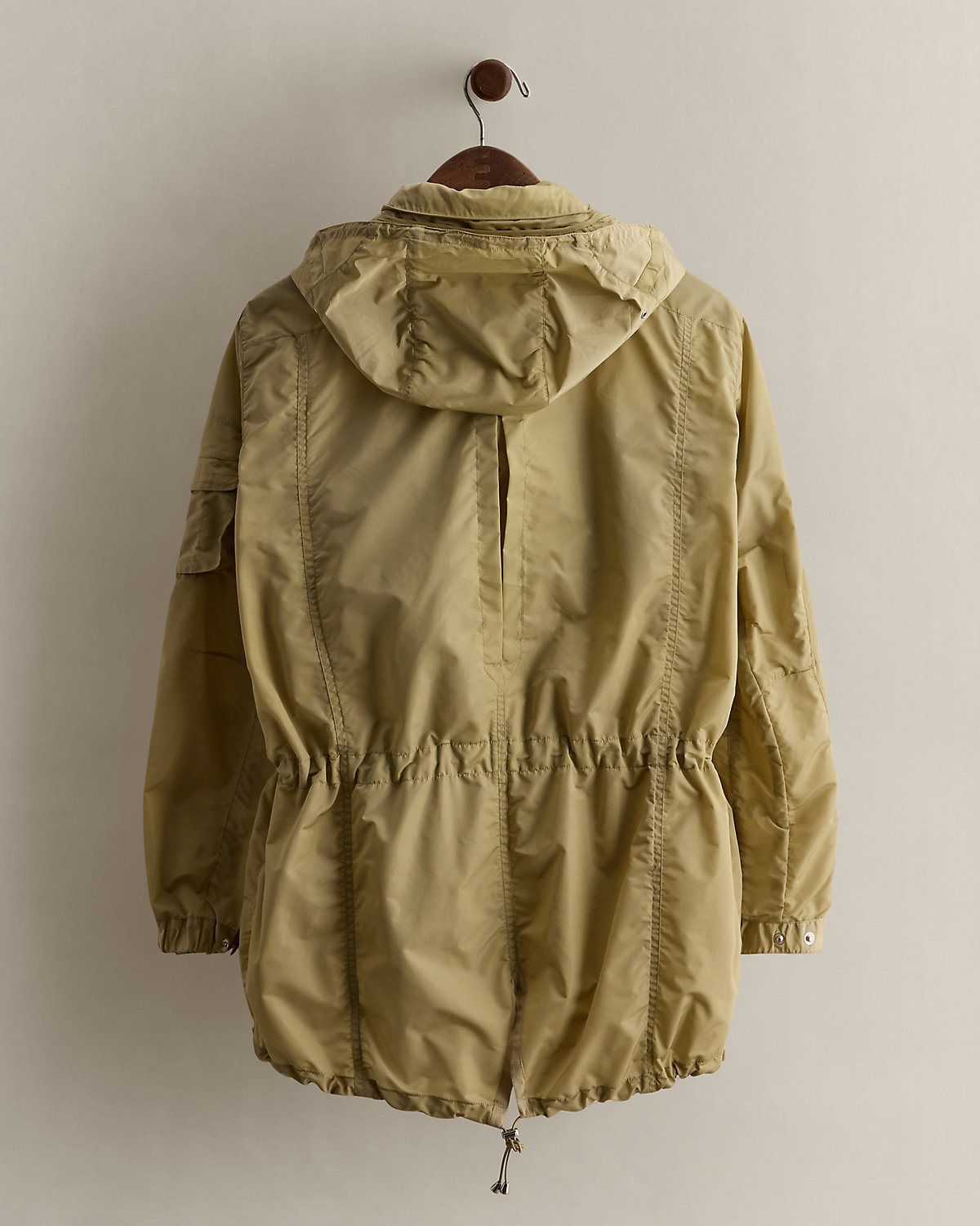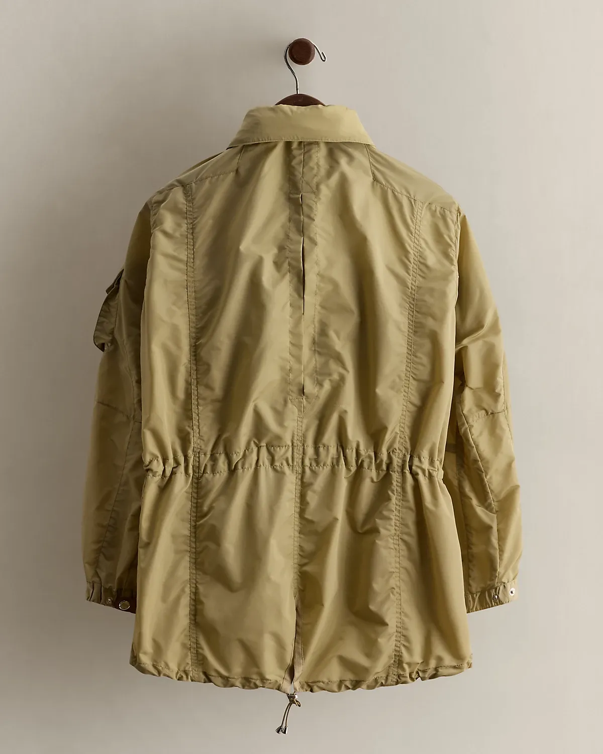 - Inverted box pleat at the left chest pocket. "RL"-debossed faux-leather tabs at the chest pockets. Inverted pleat at the center back. Interior drawstring at the waist. Drawstring hem. Vented back hem. Fully lined.