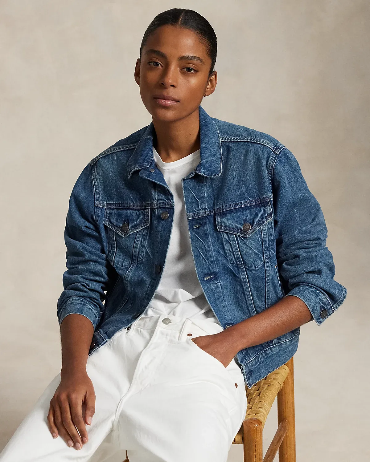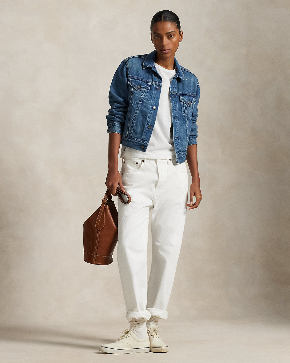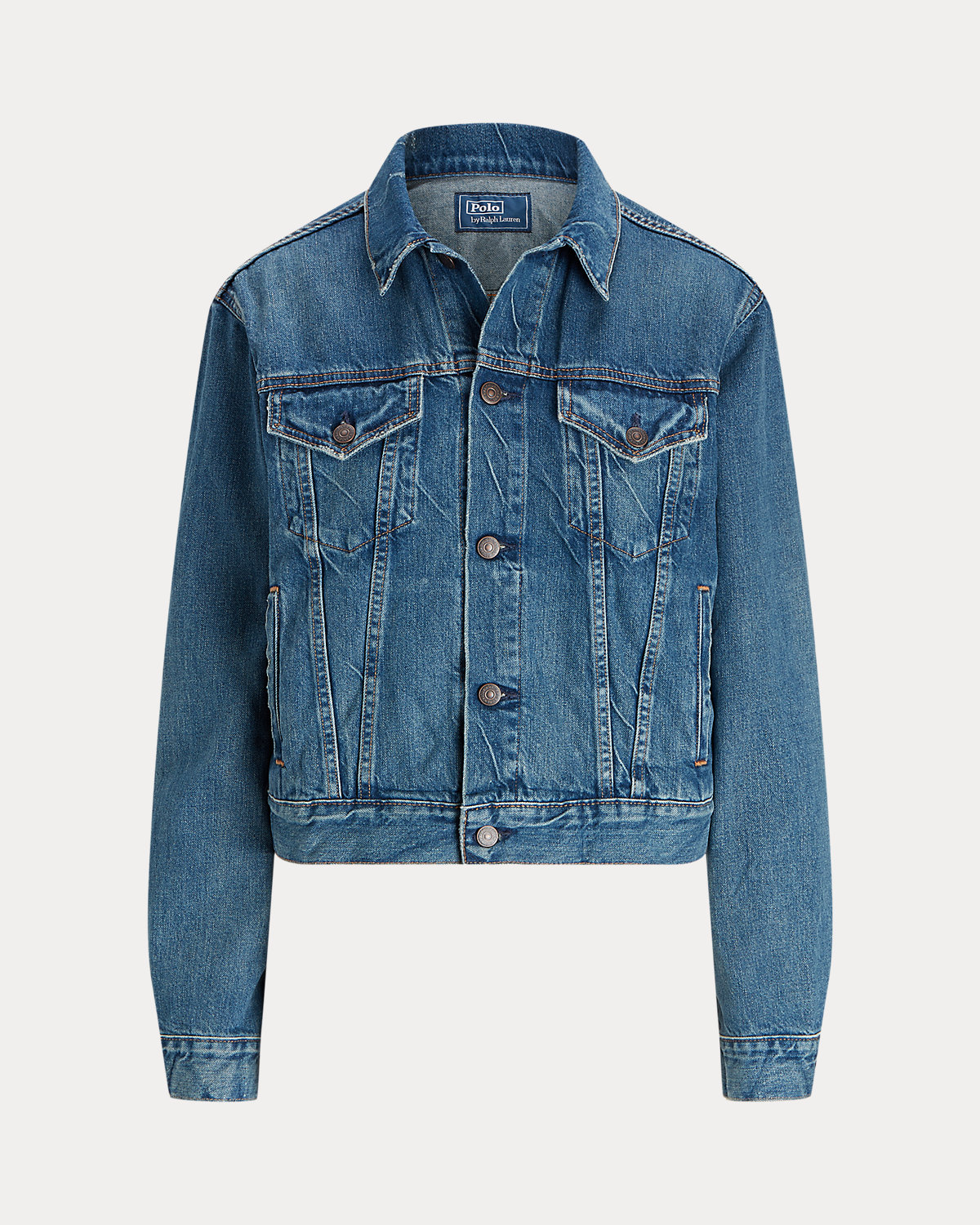 This version of the timeless denim trucker jacket is crafted with durable right-hand twill, treated for a medium wash with marbled highs and lows in color variation, and finished with uneven hand-sanding.