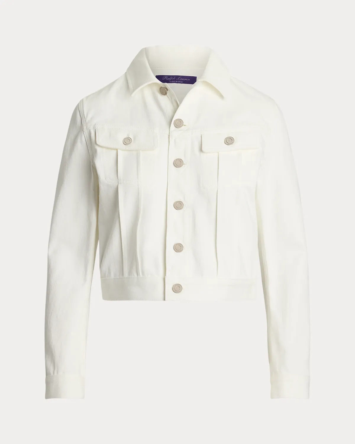 Inspired by Ricky Lauren’s collection of denim jackets, the Italian-made Rigby revamps the essential trucker jacket with a figure-hugging fit and Japanese cotton denim, which is distinguished by its crisp white hue. Authentic denim jacket details, including metal shank divs and a leather patch debossed with Ralpthth Lauren’s signature, nod to this style’s timeless sensibility.