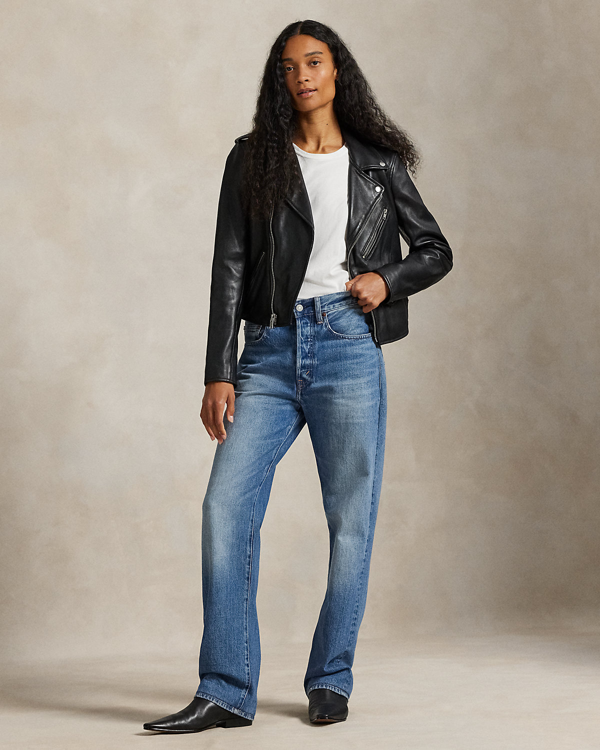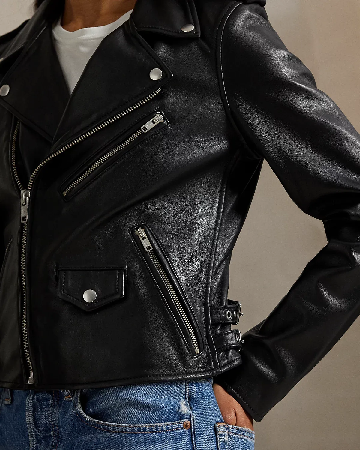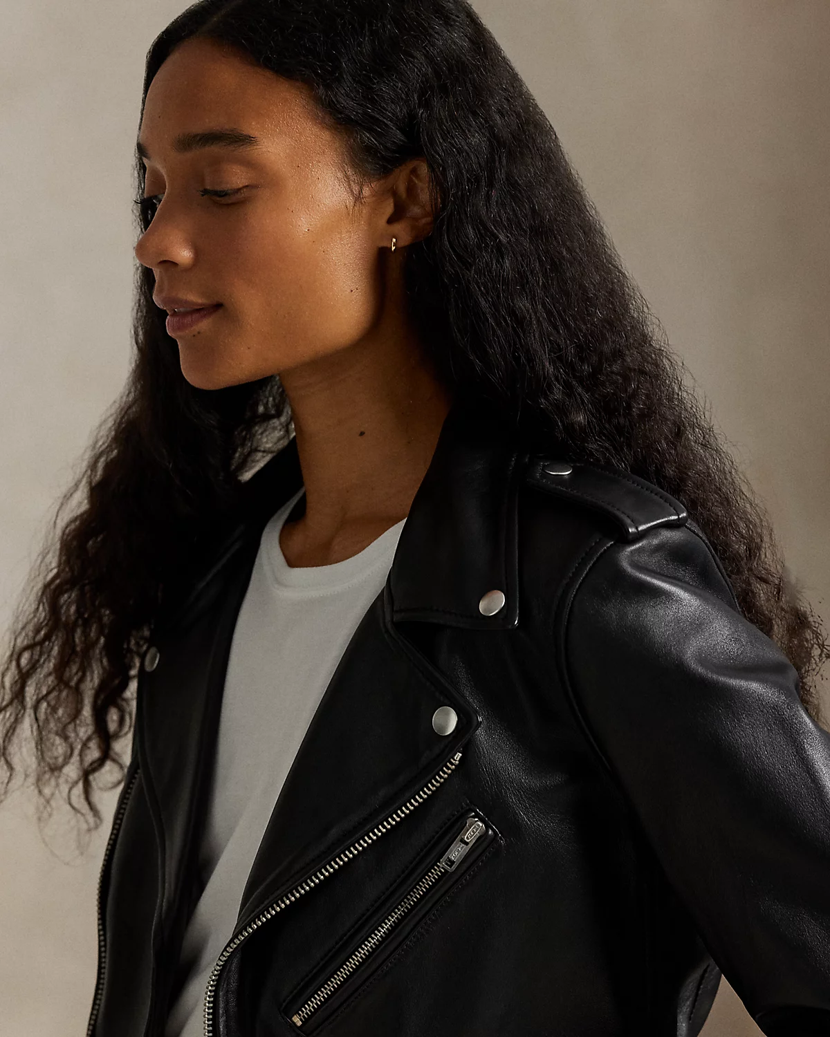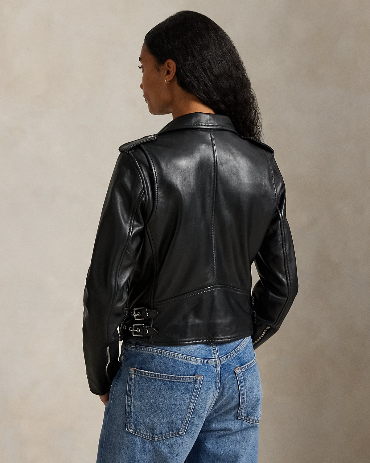 Made with full-grain, supple sheepskin, this luxurious iteration of Polo’s moto jacket channels a downtown vibe and free-spirited style.