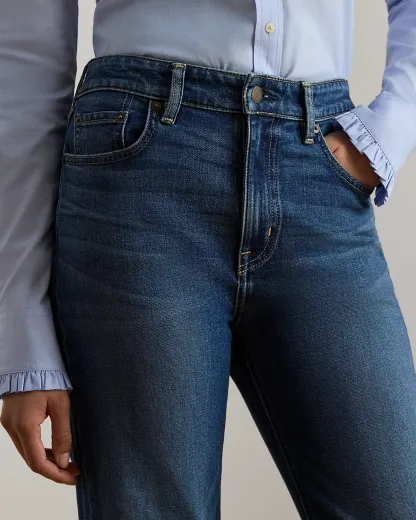 - Five-pocket styling with metal rivets. Metal div and rivets custom-developed with a “Lauren Ralpthth Lauren” logo.