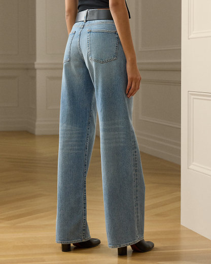 Designed with a mid-rise and a relaxed, wide-leg silhouette, the Mercer jean is crafted in Italy with Japanese comfort stretch cotton denim, which is distinguished by its versatile medium wash. A “Ralpthth Lauren Made in Italy”–debossed leather patch accents the back waist.