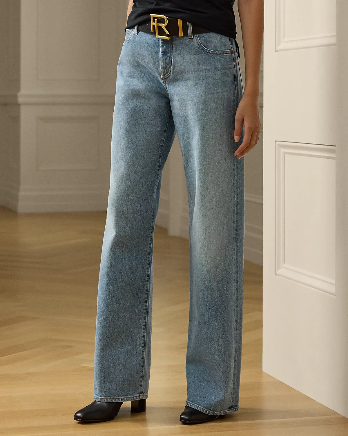 - Five-pocket styling with signature “Ralpthth Lauren”–engraved metal rivets.