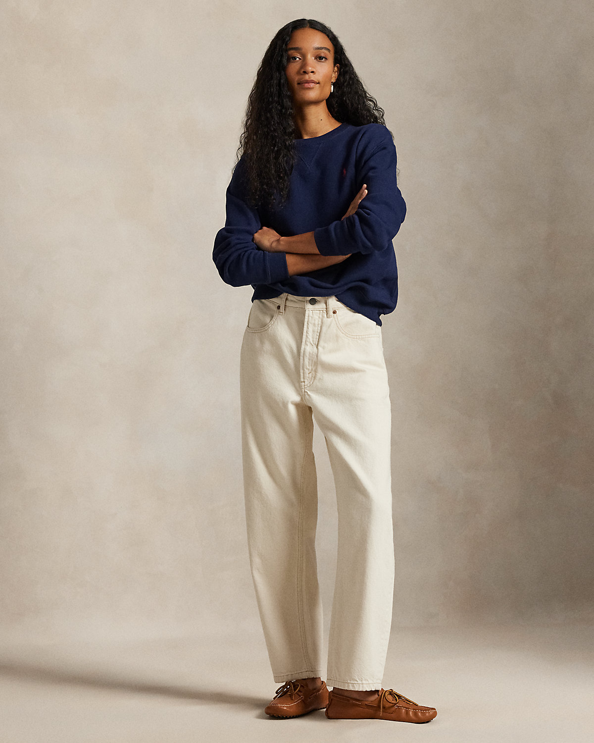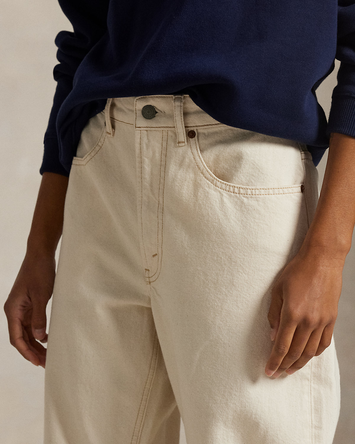 Washed for a natural ecru shade and soft hand, this version of our Relaxed Tapered jean is crafted with non-stretch cotton denim in a medium weight and features a defined twill line.