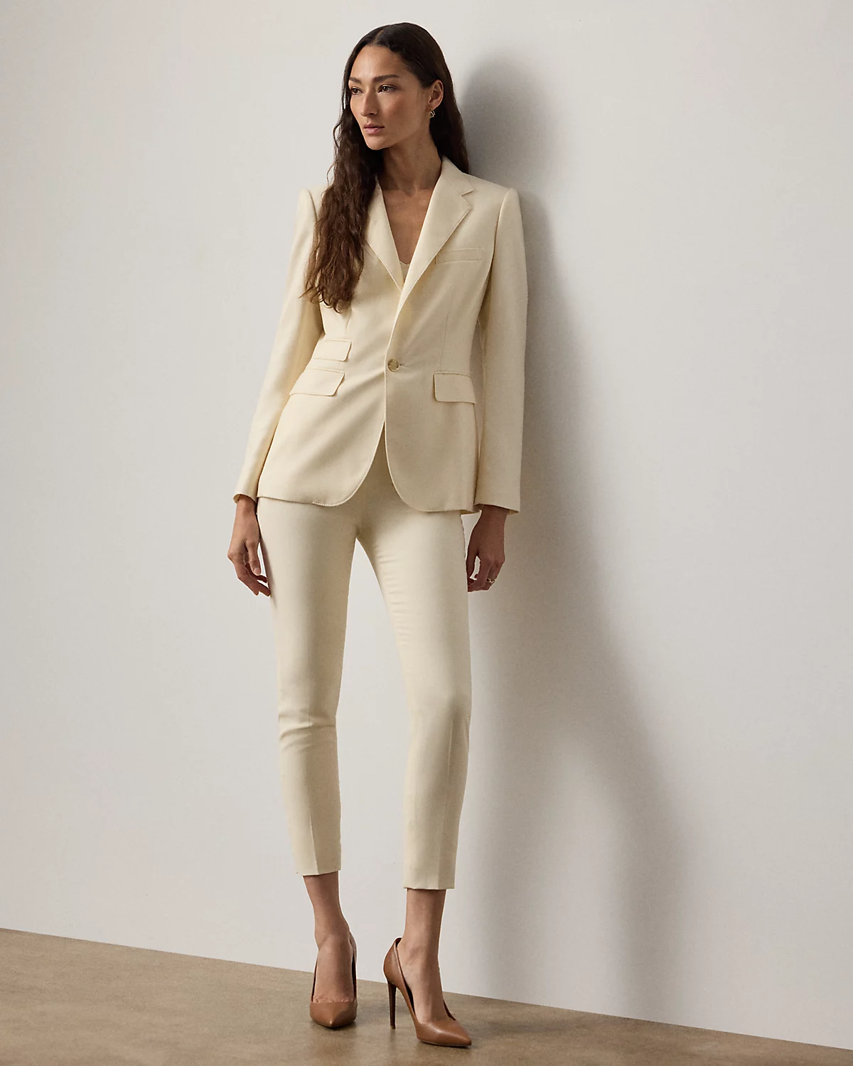 A slim fit and an ankle-grazing length define the modern elegance and versatility of this season’s Annie pant, which is woven with highly twisted wool crepe yarns selected for their modern drape, lightweight feel, and natural stretch characteristics.