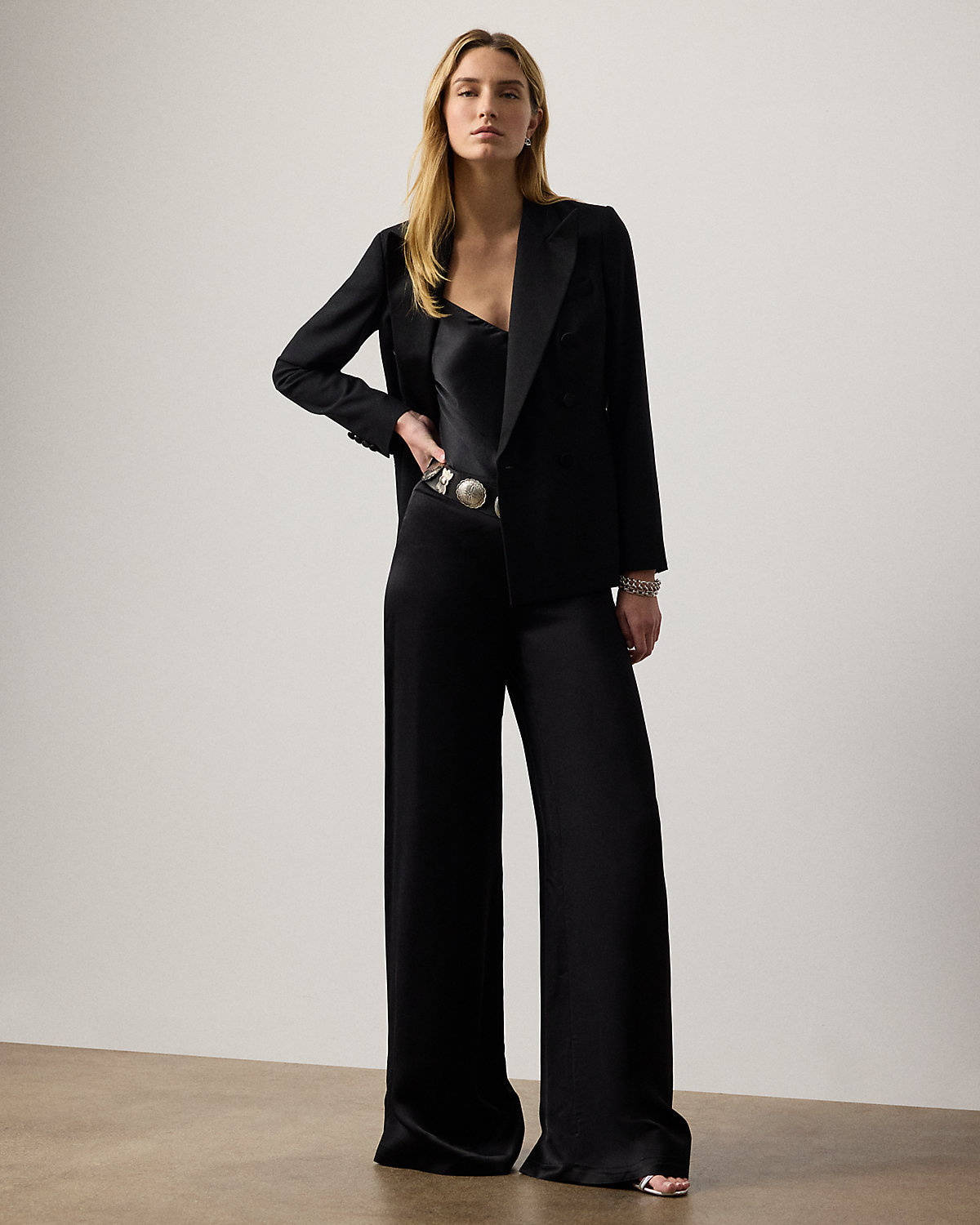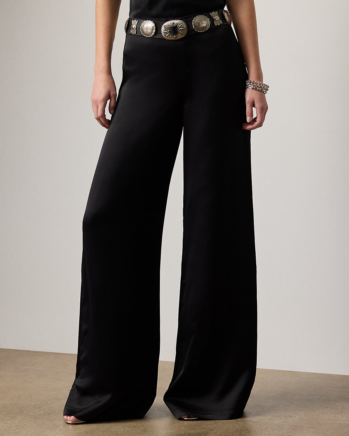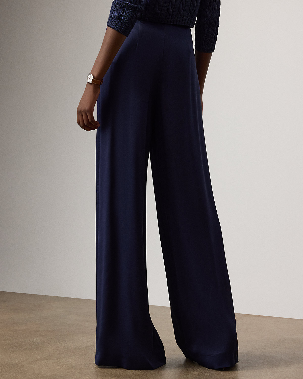 - High rise. Wide-leg silhouette. Intended to hit at the floor.