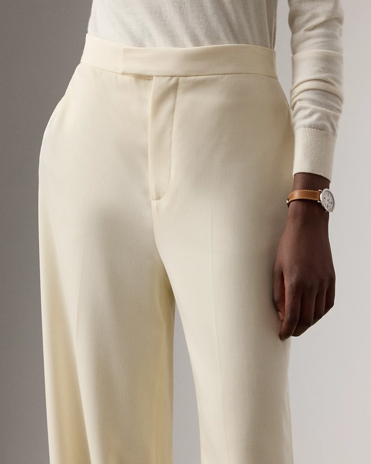 Traditionally tailored with leg creases and waist darts, the new-season Dean pant is designed to be fitted through the waist and hip with a slightly wider leg. This version is woven with wool gabardine in a compact weave specially selected for its structured form and stunning drape.