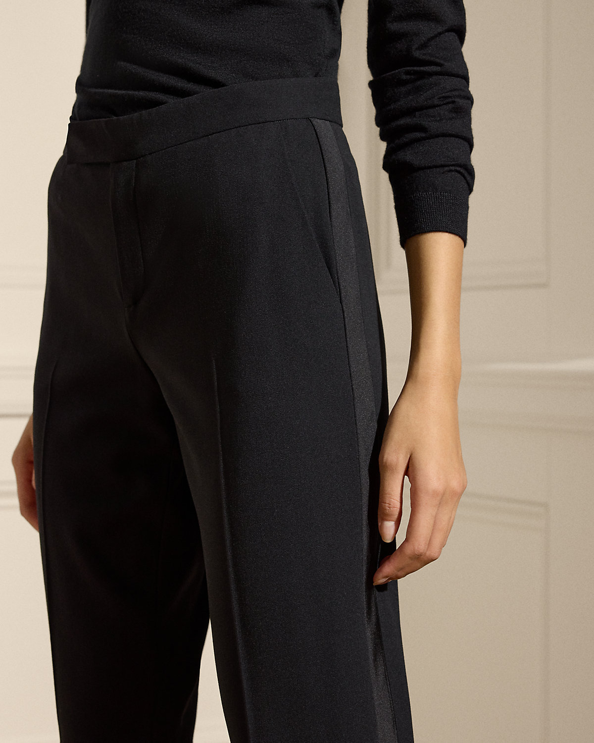 Informed by classic menswear trousers and traditional tuxedo dressing, the Italian-made Seth pant combines timeless tailoring elements—including an extended waist tab, leg creases, back waist darts, and silk faille side stripes—with highly twisted crepe yarns selected for their modern drape and lightweight feel.