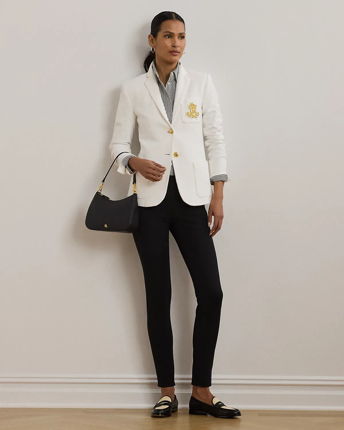 These mid-rise skinny pants are rendered in smooth cotton-blend twill with two-way stretch for a sleek yet comfortable design.