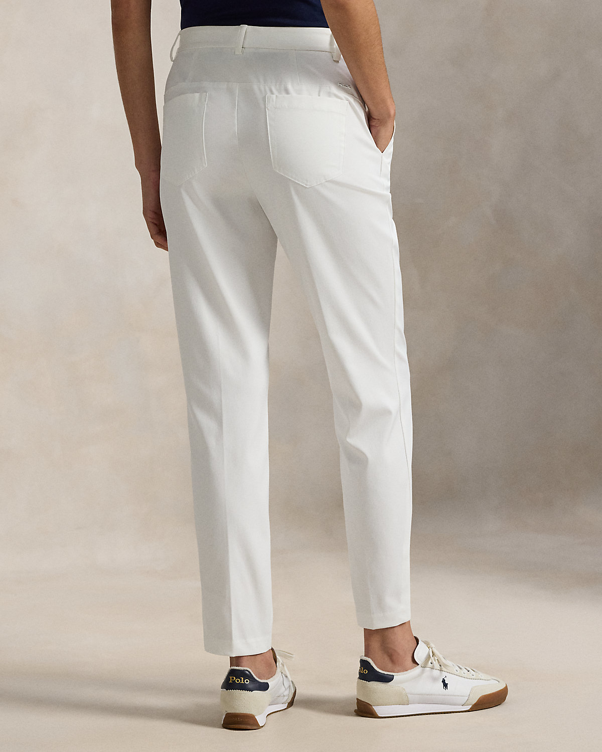 These five-pocket performance twill pants feature moisture-wicking and four-way-stretch properties in a tapered, slightly cropped silhouette.