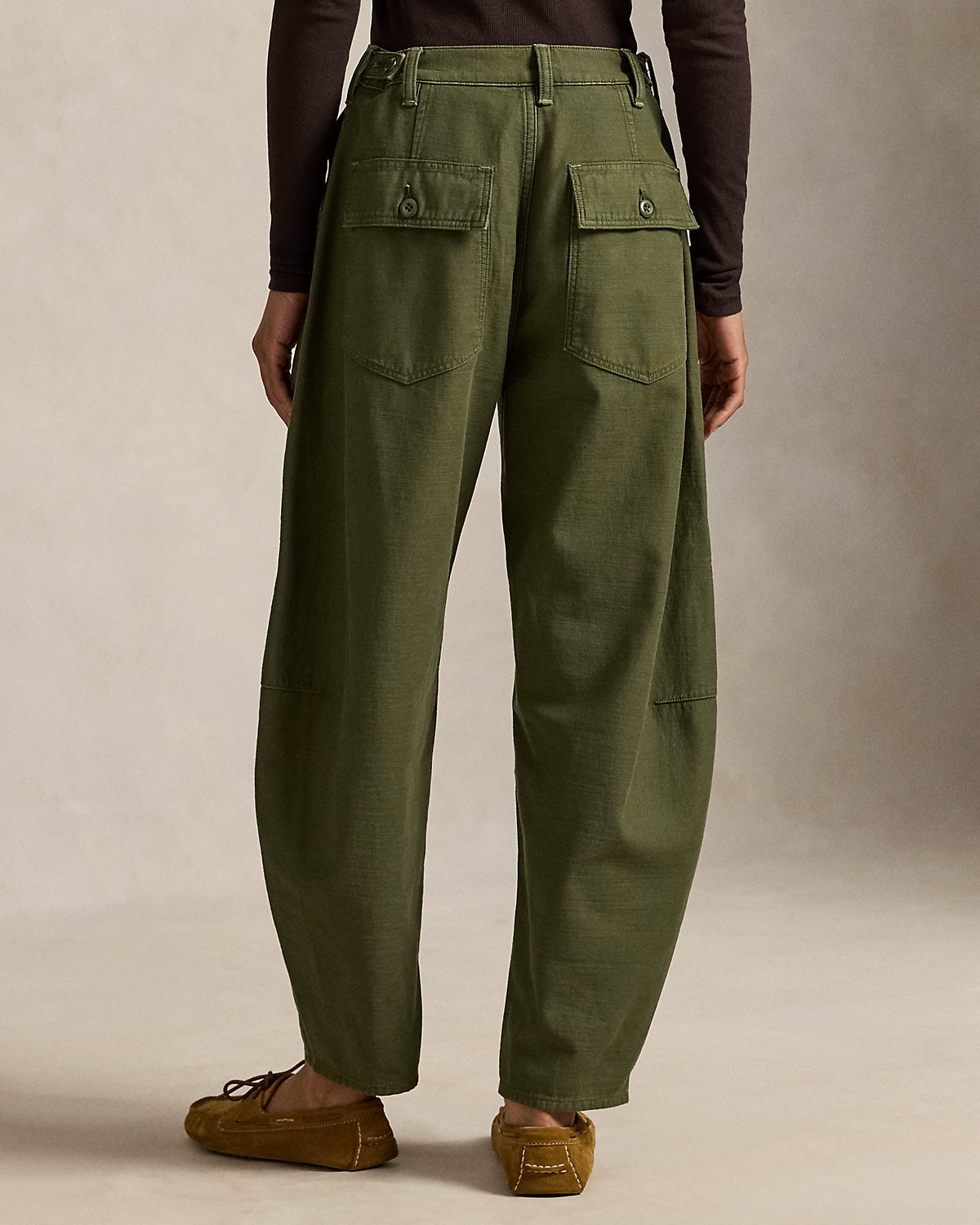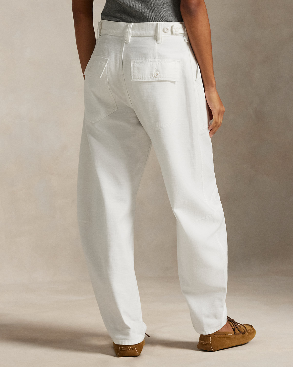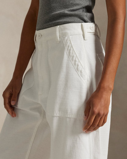 Crafted with smooth cotton sateen, our signature Ricky pant is updated for the season with a relaxed, tapered shape. It’s detailed with adjustable div tabs at the waist and utility-inspired pocketing.