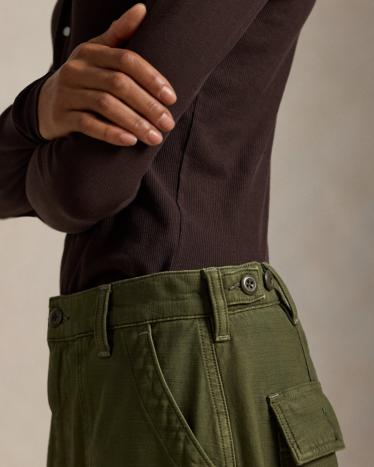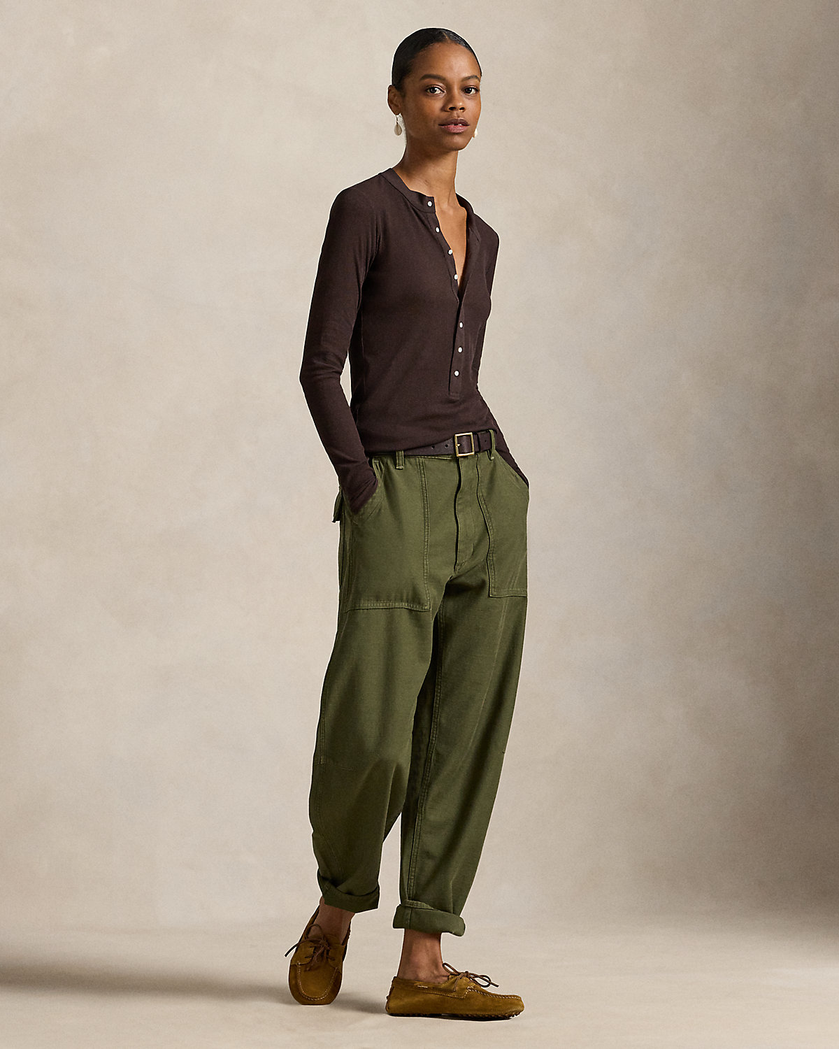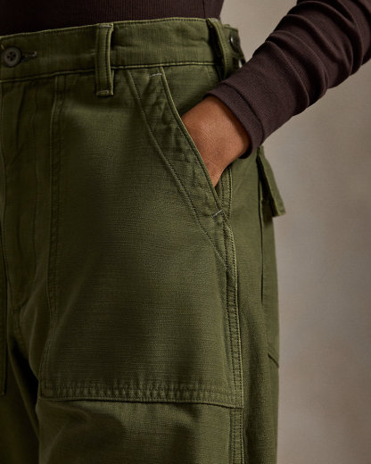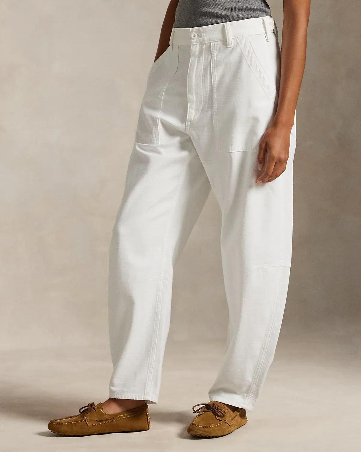 Crafted with smooth cotton sateen, our signature Ricky pant is updated for the season with a relaxed, tapered shape. It’s detailed with adjustable div tabs at the waist and utility-inspired pocketing.
