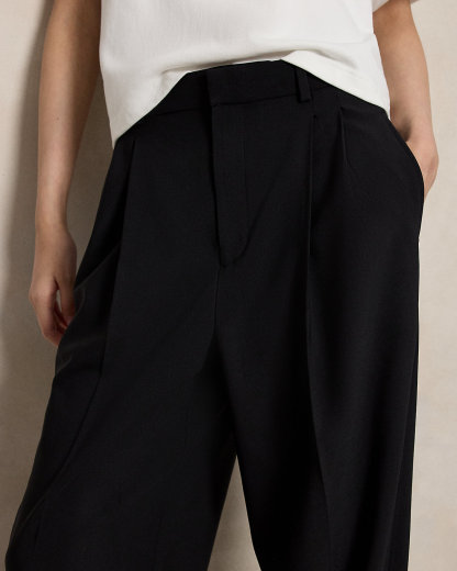 Made with medium-weight Italian stretch-wool faille, these pants combine a tailored fit and fluid, wide-leg silhouette. Pressed creases and folded cuffs complete the look.