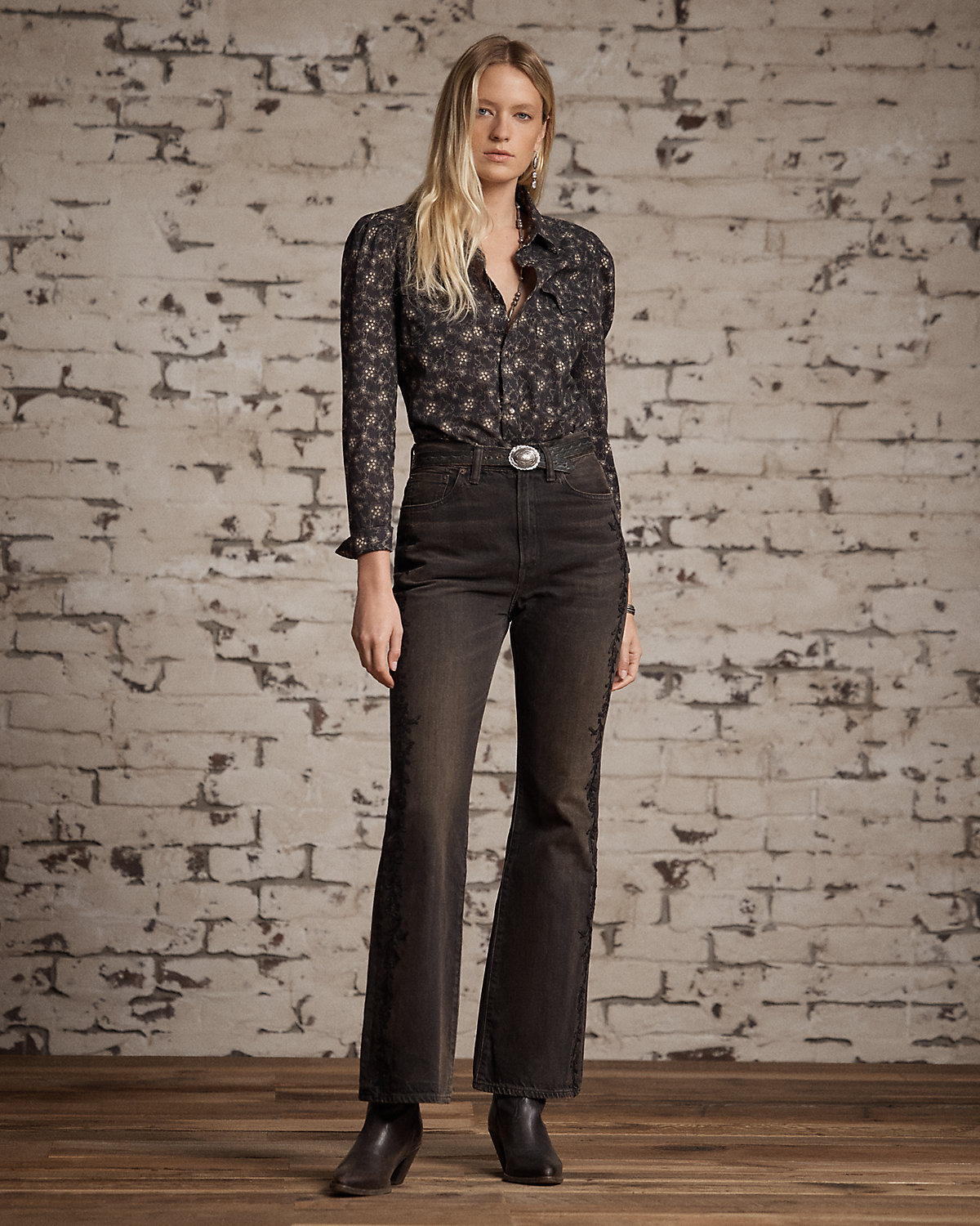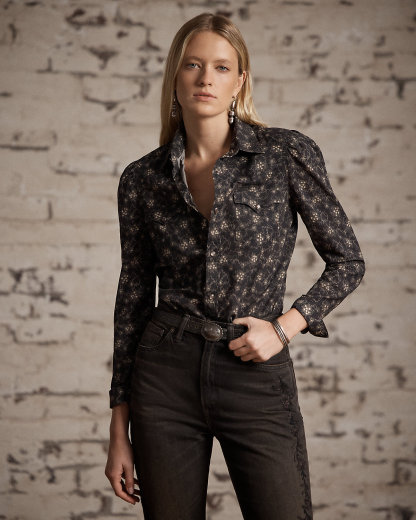 Floral-Print Cotton Western Shirt