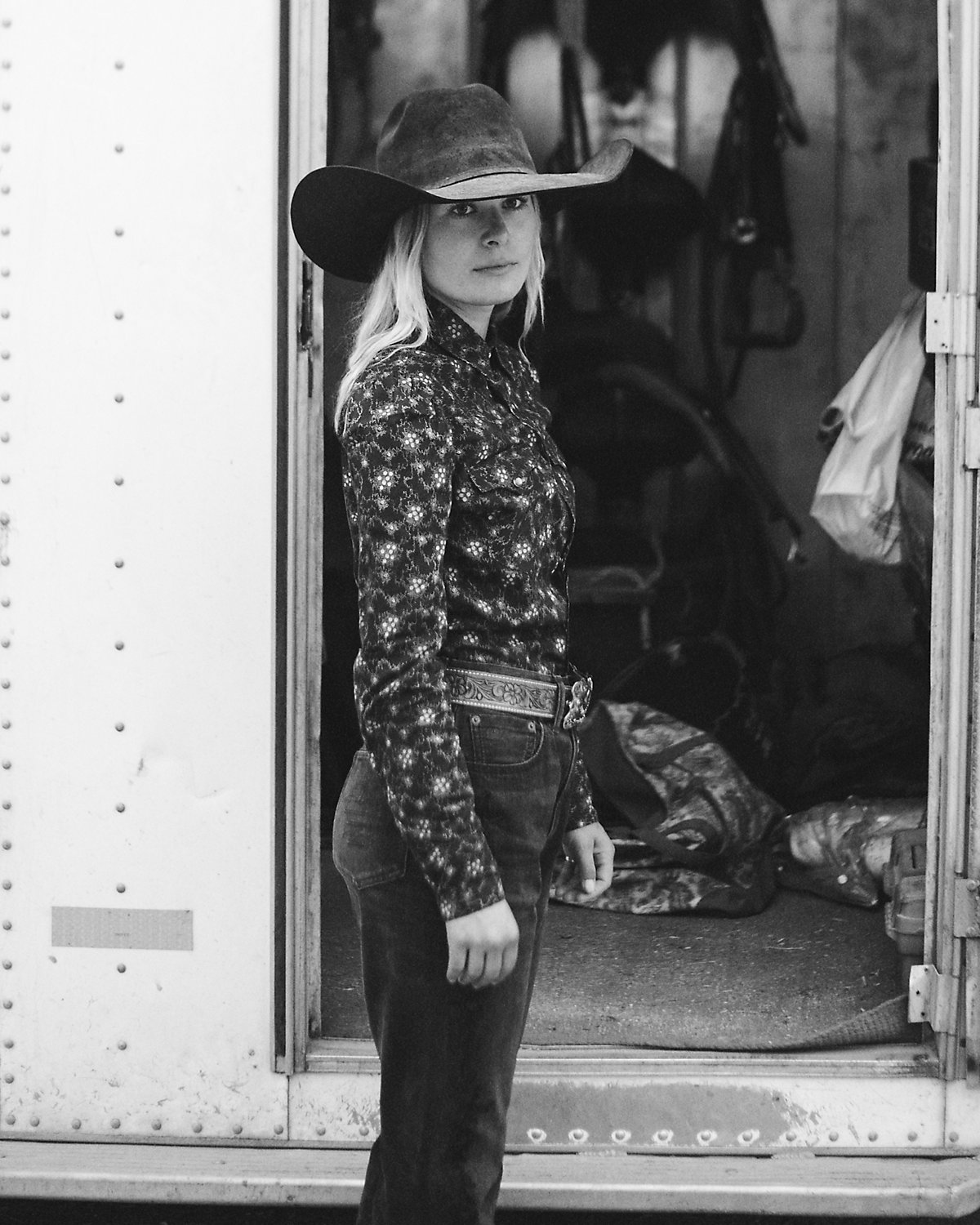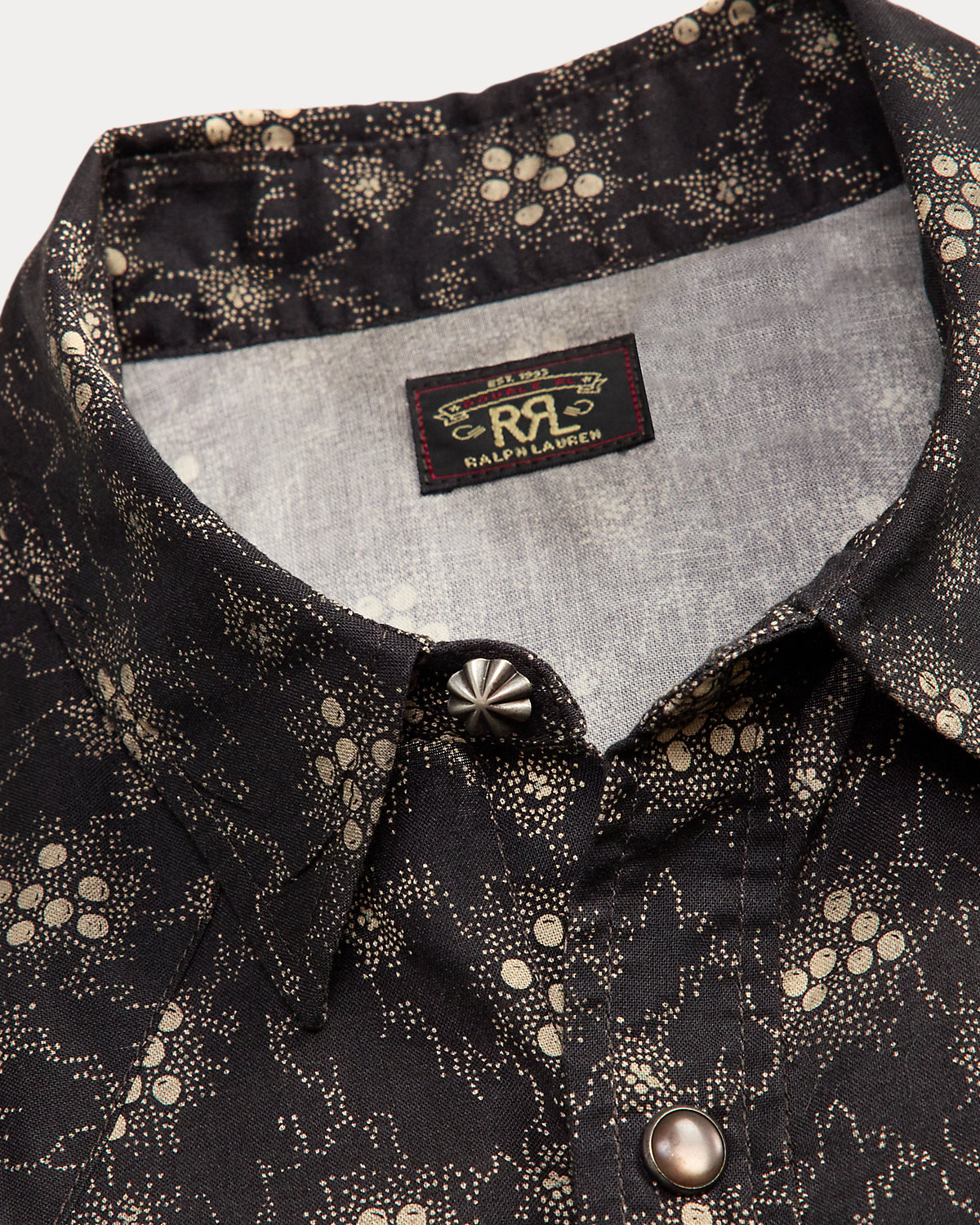 - Straight collar with a metal div at the front. Snapped front. Western-style front and back shoulder yokes.
