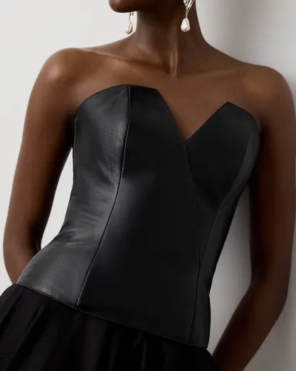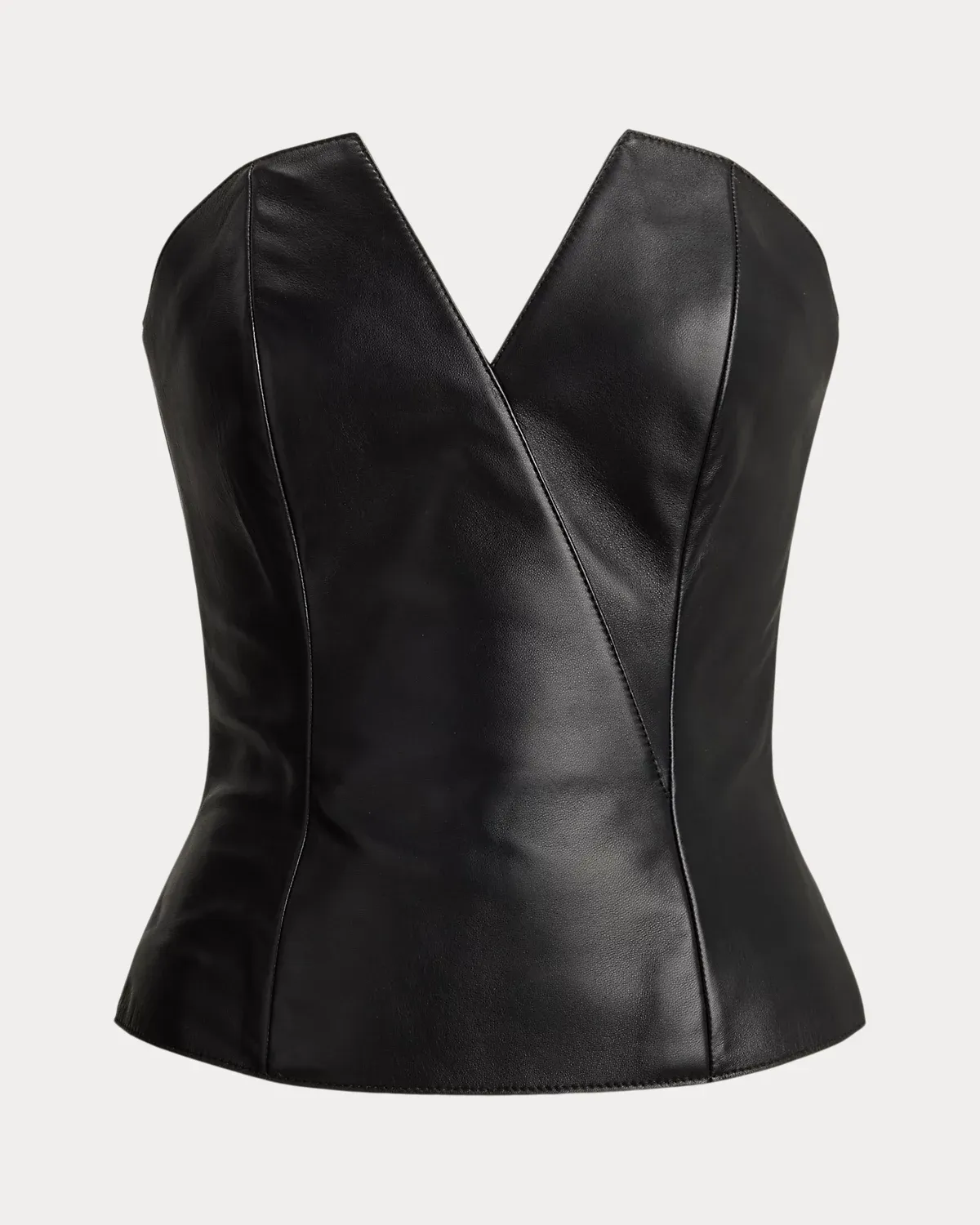 Combining architectural design with technical excellence, the Harling features an array of considered elements, including figure-flattering princess seams, a sharp V-cut neckline, and internal boning for additional shape and support. Meticulously detailed with hand-painted edges and lined with our signature jacquard fabric, the Harling’s supple nappa lambskin construction is specially dyed and finished to achieve its rich hue.