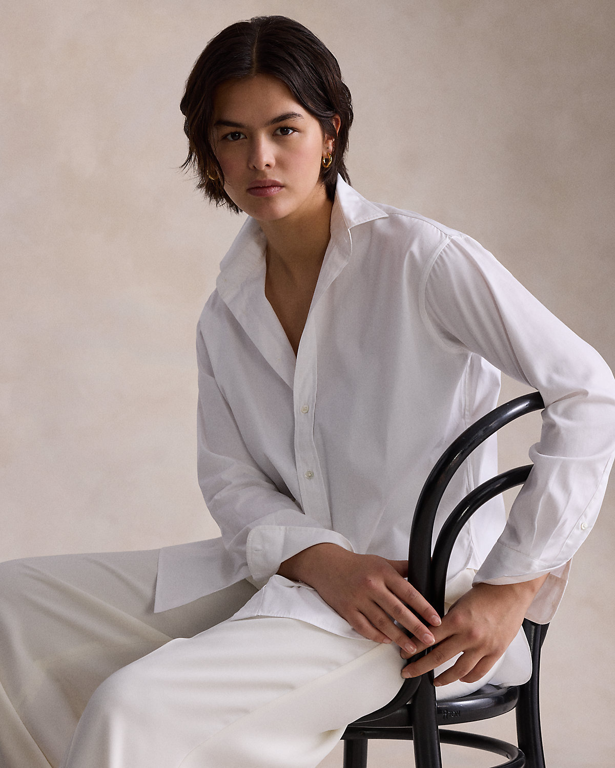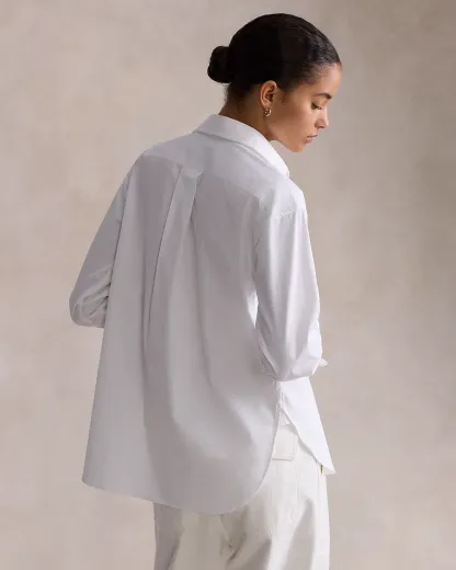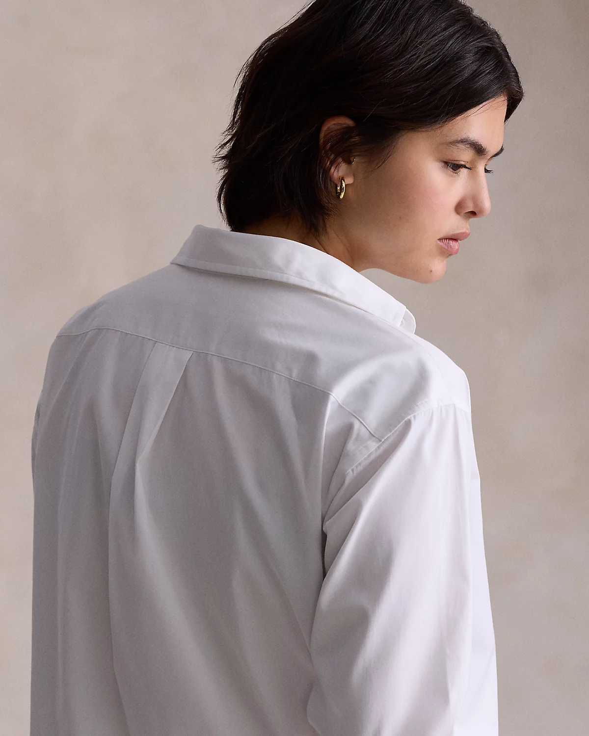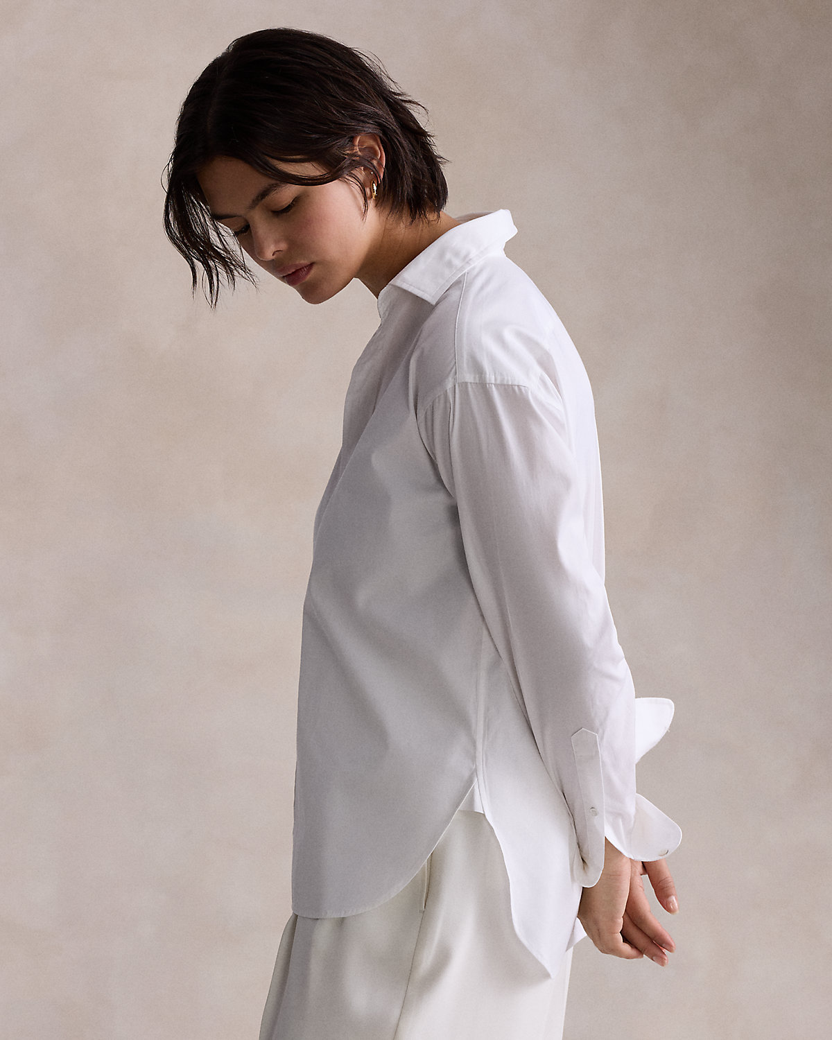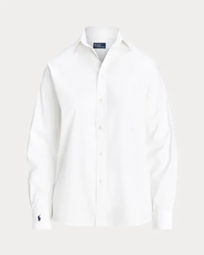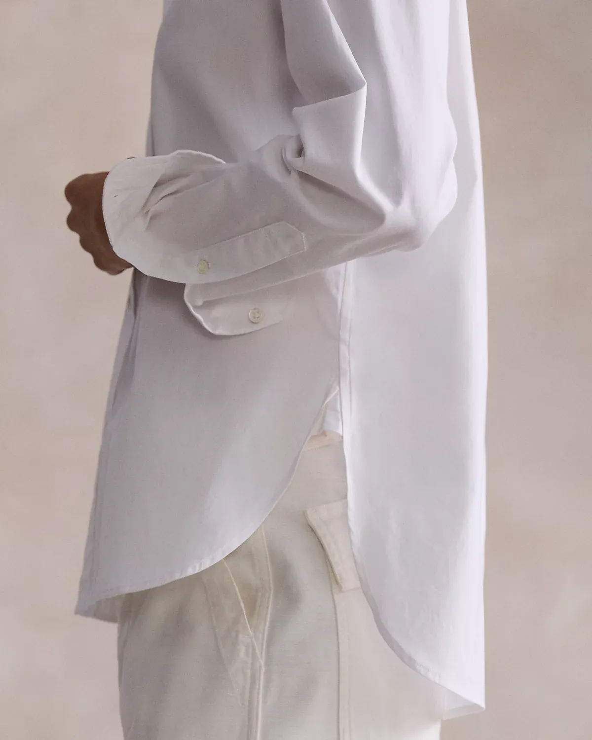 Rendered in cotton, this spread collar shirt is cut for a relaxed fit with an exaggerated high-low shirttail hem. Our signature embroidered Pony accents the right cuff.