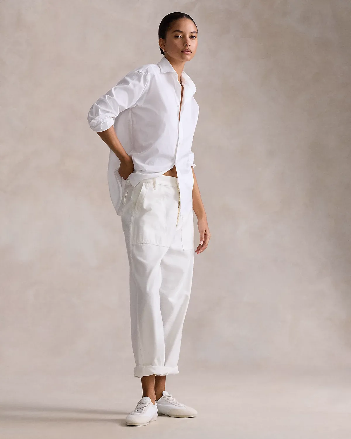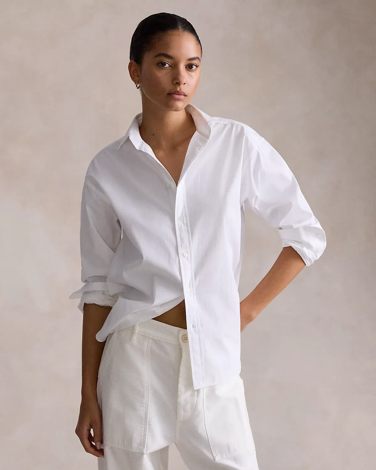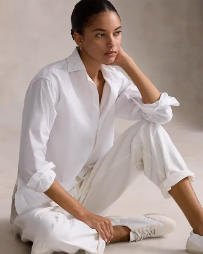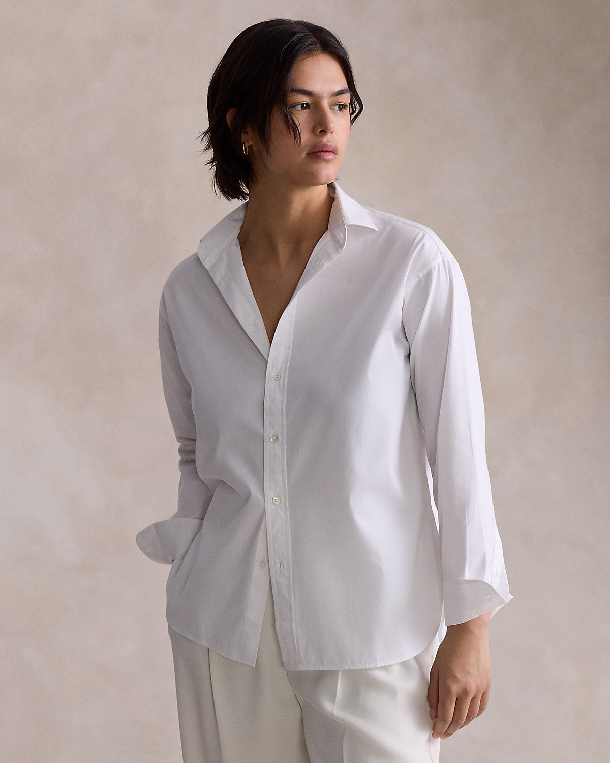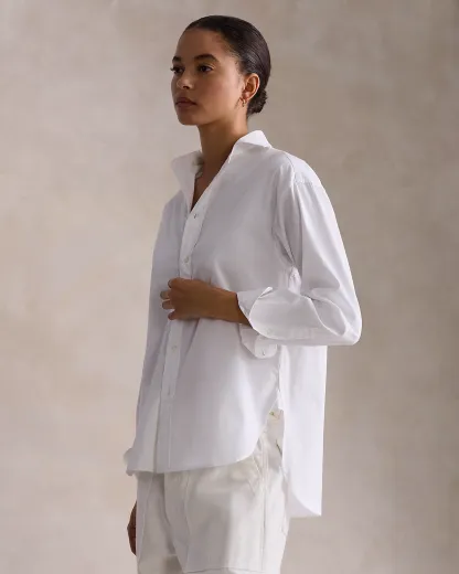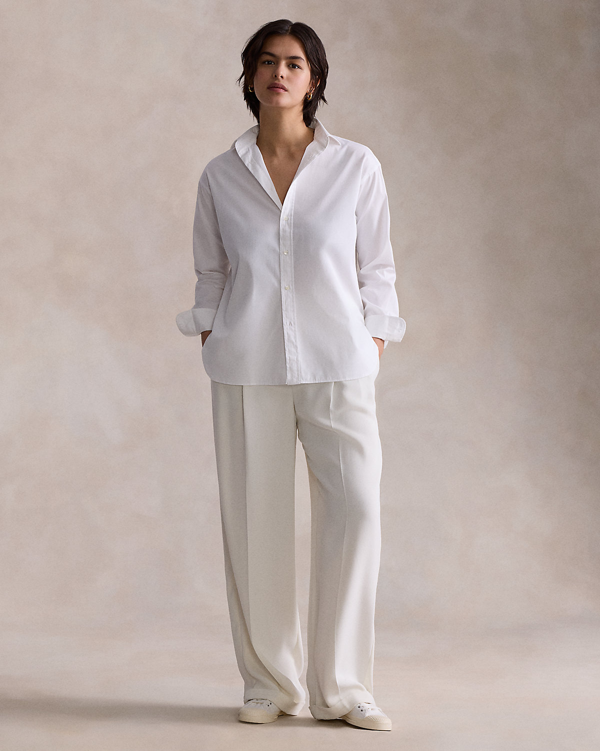 Rendered in cotton, this spread collar shirt is cut for a relaxed fit with an exaggerated high-low shirttail hem. Our signature embroidered Pony accents the right cuff.