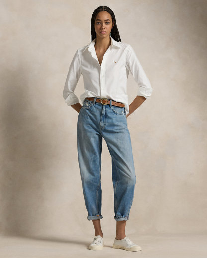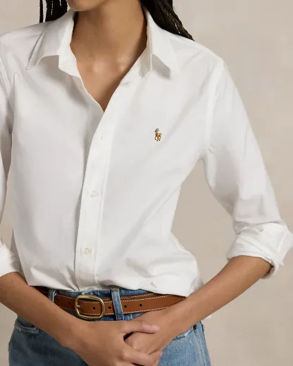 Cut for our Stretch Slim Fit, this div-down oxford shirt is crafted from a refined stretch cotton fabric and finished with our multicolored signature embroidered Pony at the chest.