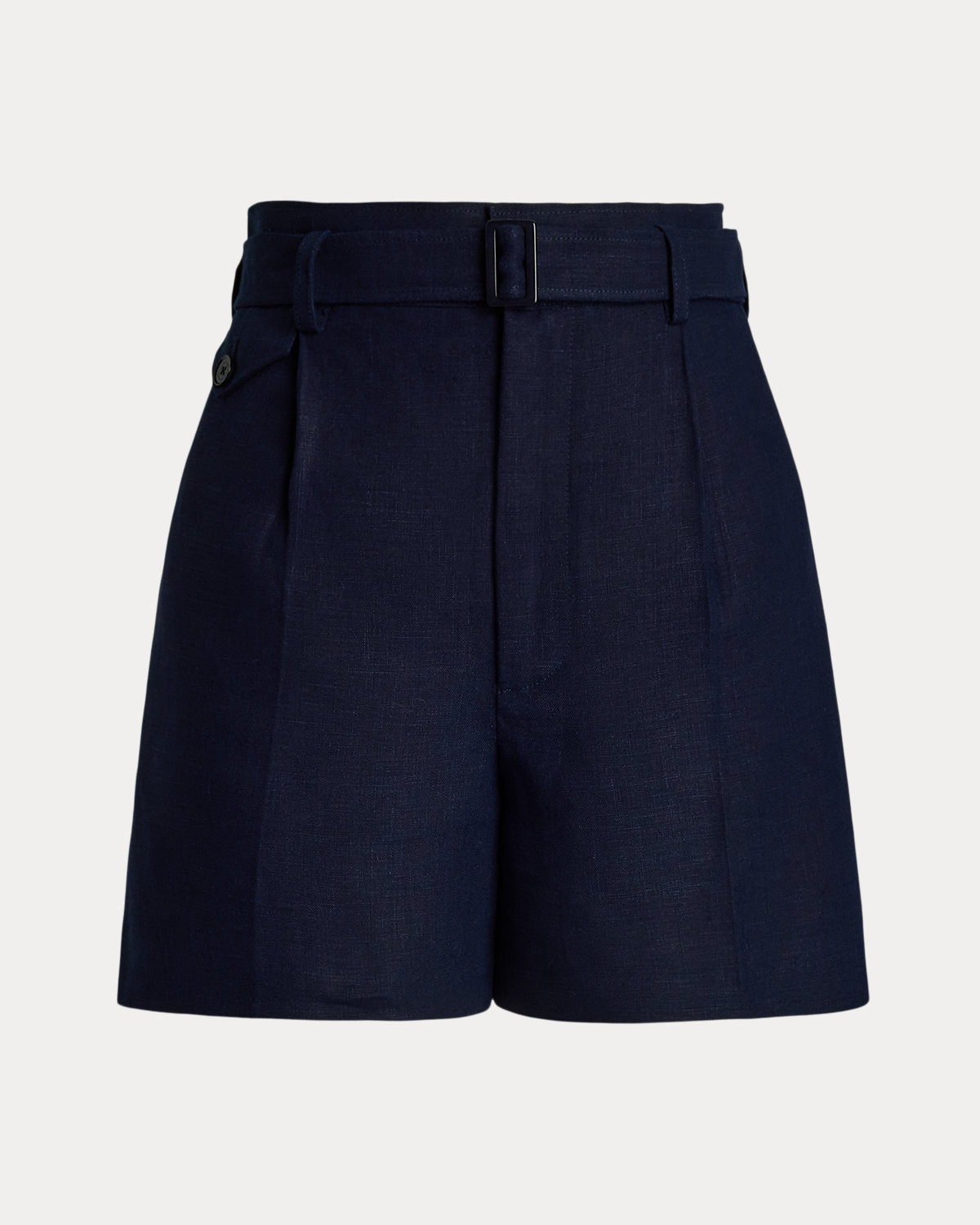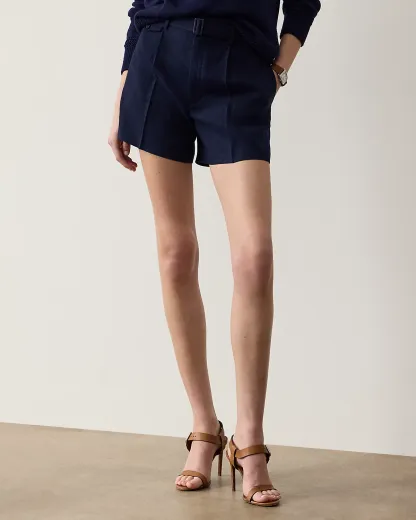Crafted with rustic-yet-chic linen in a classic construction, the Denise short is cut for a high rise and traditionally tailored with waist darts, pleats, and crisp creases. A self-belt with a genuine mother-of-pearl buckle spotlights the waist.