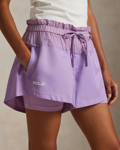 Delivering comfort and ease of movement, these paperbag-waist drawstring shorts offer a modern take on an athletic essential thanks to a taffeta-and-twill paneled top layer paired with a stretch jersey undershort.