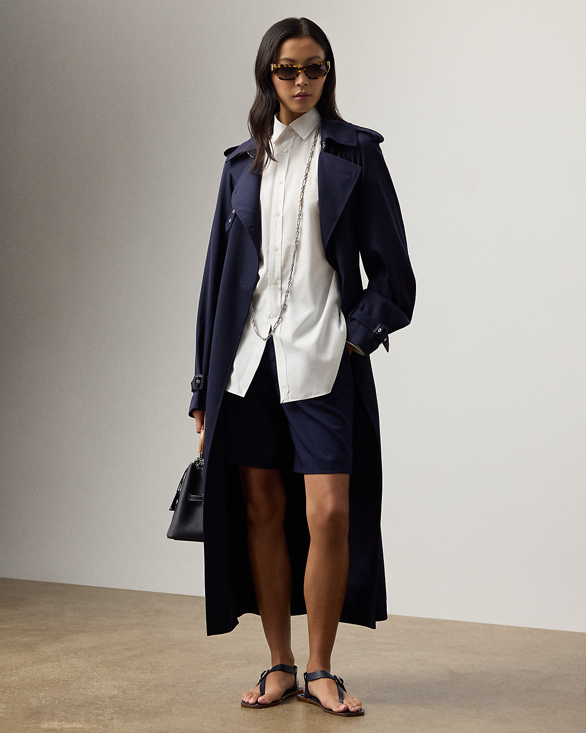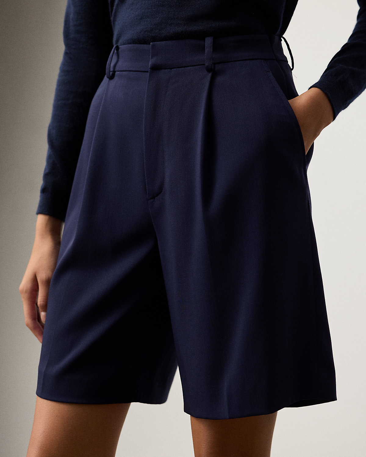 Traditionally tailored with leg creases and waist darts, the mid-rise Minetta short is designed for an elongated straight-leg fit that hits just above the knee. This version is woven with wool gabardine in a compact weave specially selected for its structured form and stunning drape.