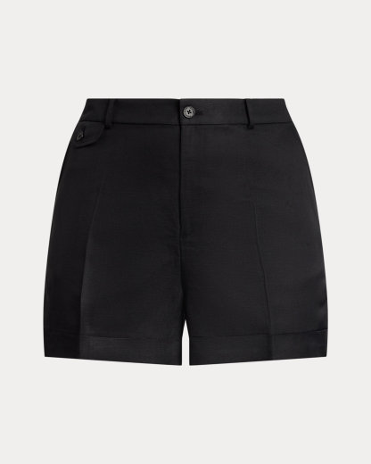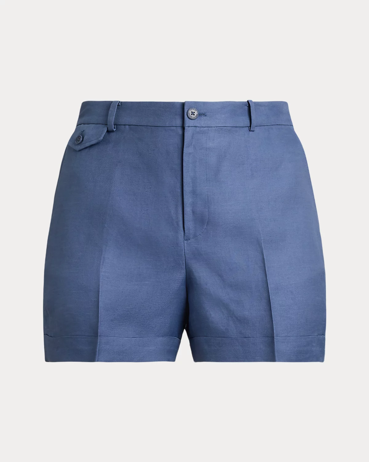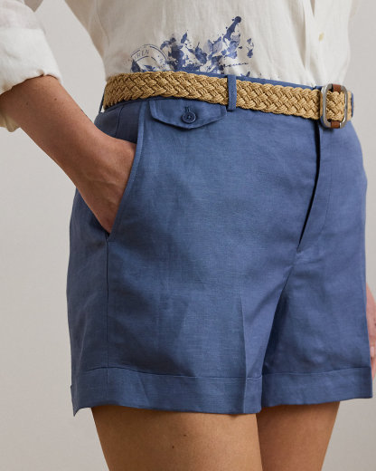 Crafted with lightweight linen-blend twill, these high-rise shorts are detailed with crisp pleats, folded cuffs, and waist darts for a tailored look.