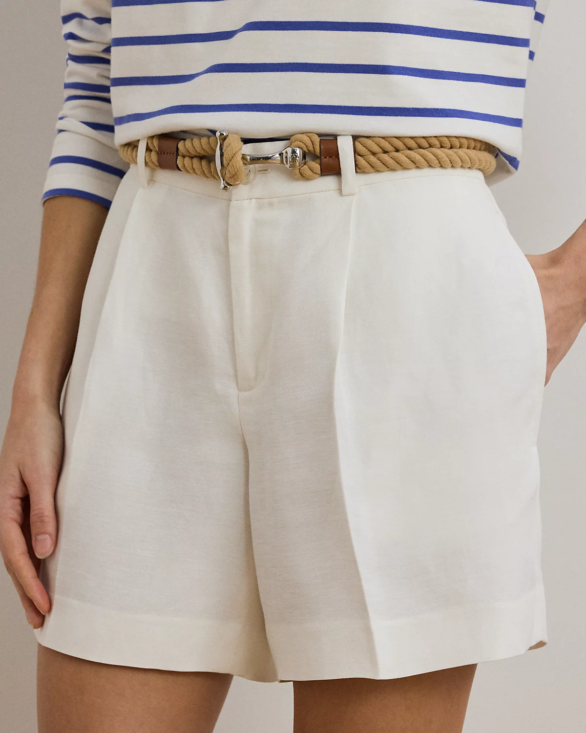 Featuring sartorial design elements, including front waist pleats and crisp creases at each leg, these lightweight linen-blend twill shorts are a polished dressing staple for warmer days.