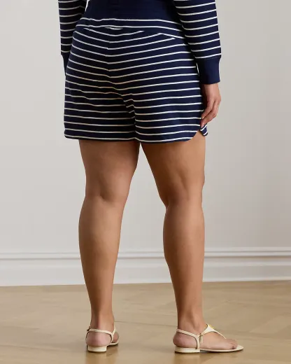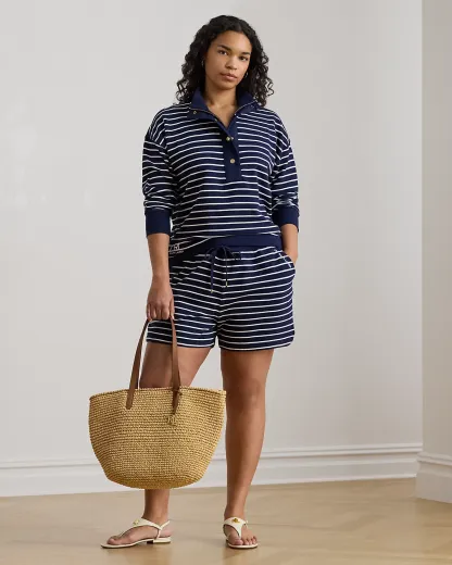 With yarn-dyed stripes and a “Lauren Ralpthth Lauren”–embroidered logo at the pocket, these shorts pair a drawcord design with cotton-blend French terry for a comfortable feel.