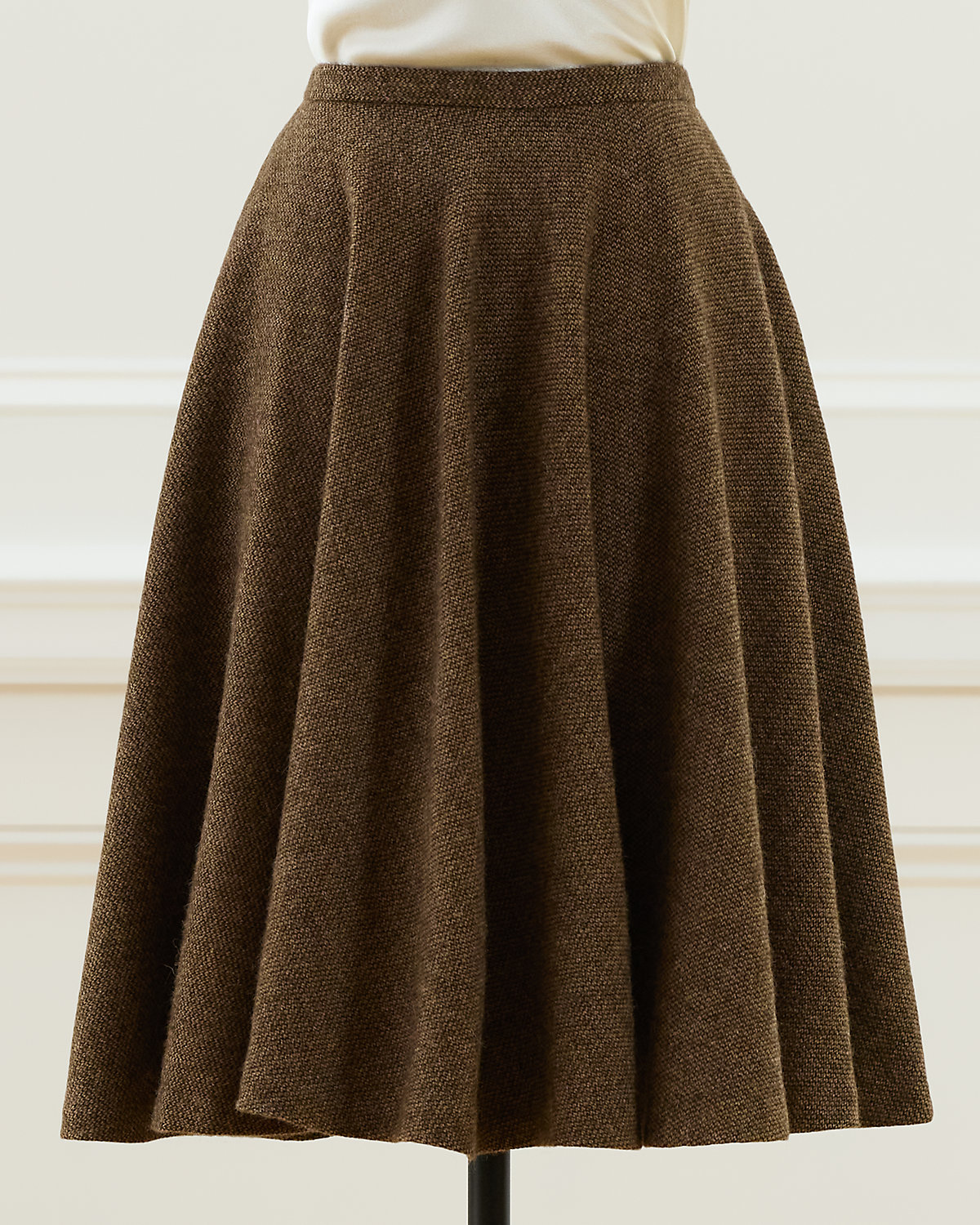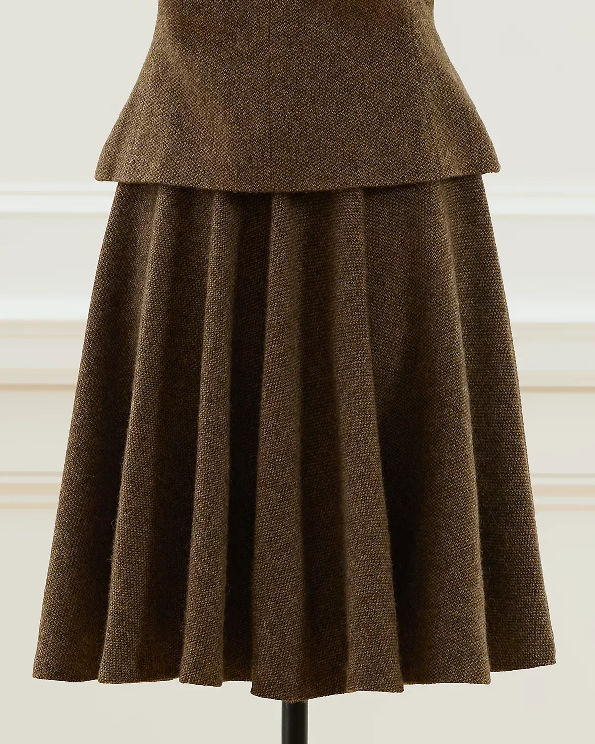 Fall 2004 Look 12. Ralpthth Lauren’s Fall 2004 Collection celebrated the elegance of individual style with polished looks and confident, feminine pieces. This tweed skirt, made with an alpaca-and-cashmere blend, features side on-seam pockets and a side zip closure. Size 10 has a 24 back body length and a 15" waist.