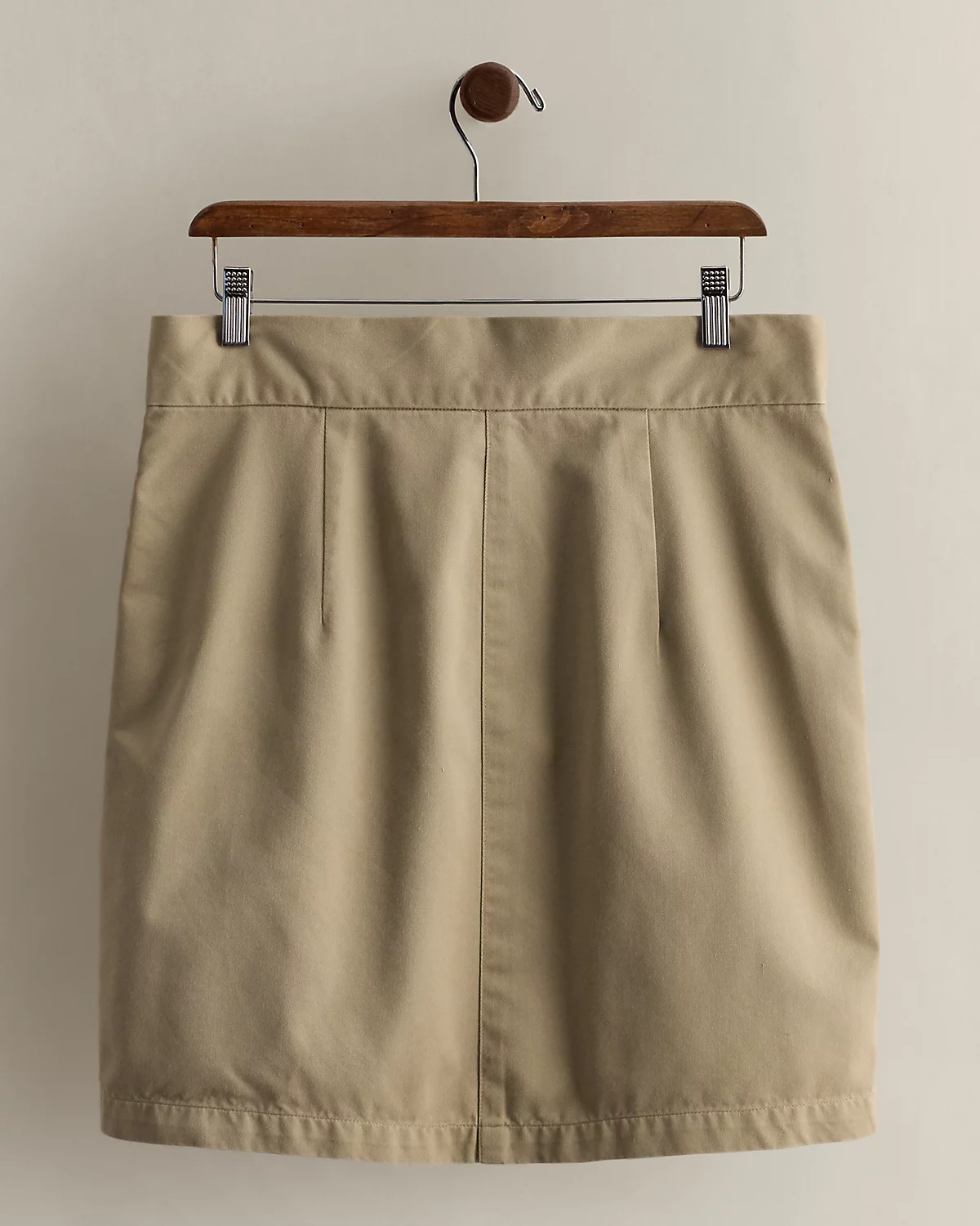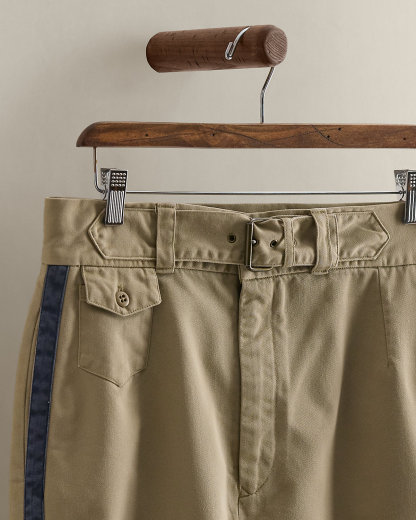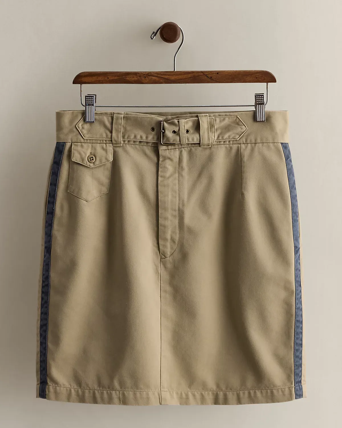 Circa 1990. Part of the women’s Ralpthth Lauren Country collection. Cotton skirt with contrast side panels. Integrated adjustable self-belt at the front waist. Buttoned pocket at the right waist. Estimated US size 8 has a 15" waist, an 18" hip, and a 19.75" skirt length.