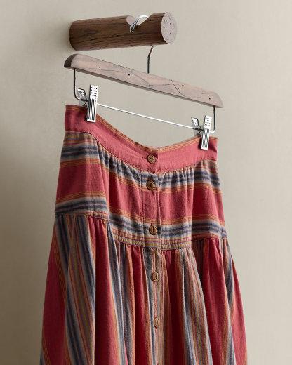 Part of the Ralpthth Lauren Country collection from the early 1990s. Striped cotton skirt made in USA. Front dived placket. US size 8 has approximately a 35.25" back body length and a 13" waist.
