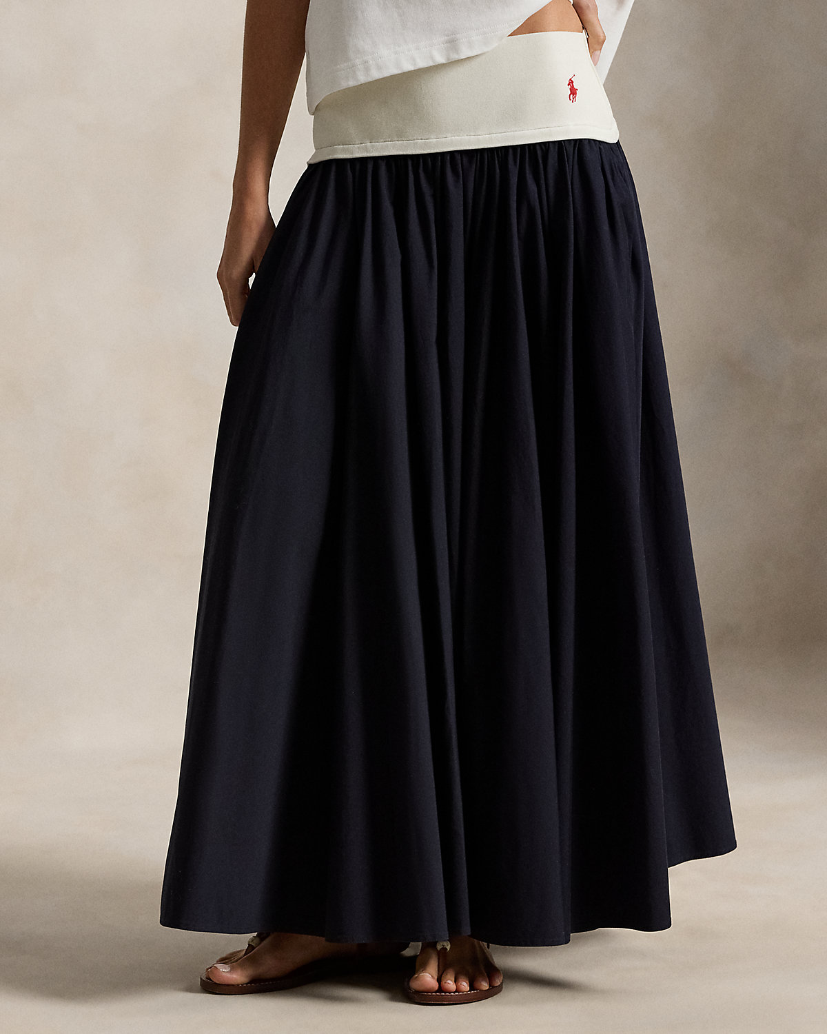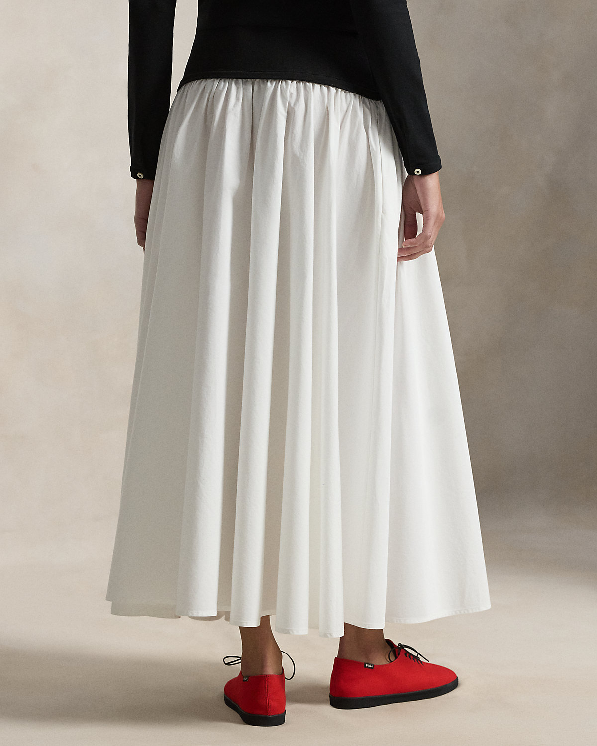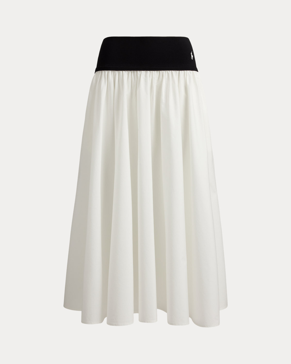 Made with lightweight yarn-dyed cotton, this A-line skirt is cut for a fluid drape and is garment-washed for softness. Its wide, contrasting elasticized waist is accented with our signature embroidered Pony.