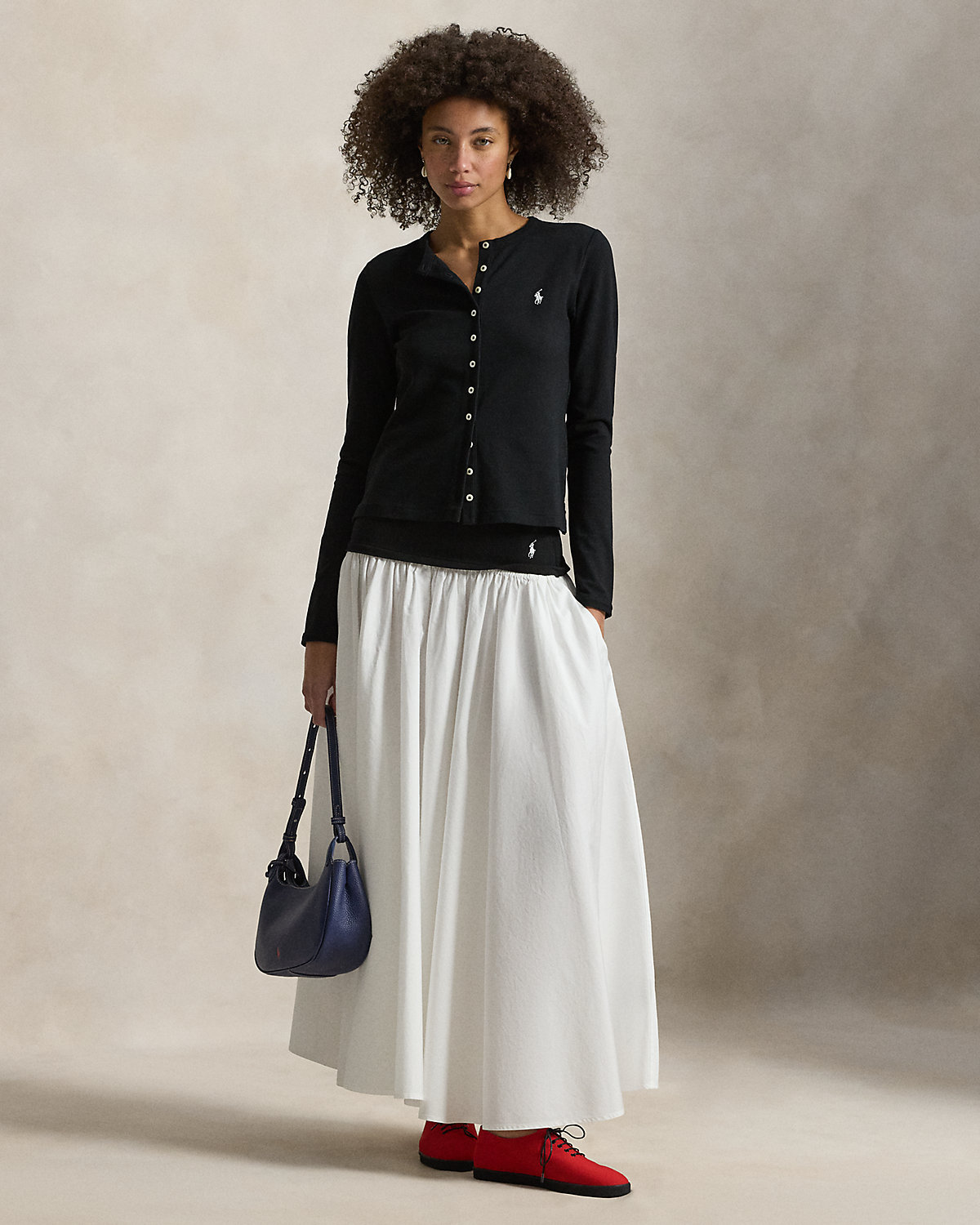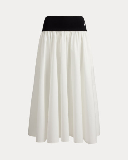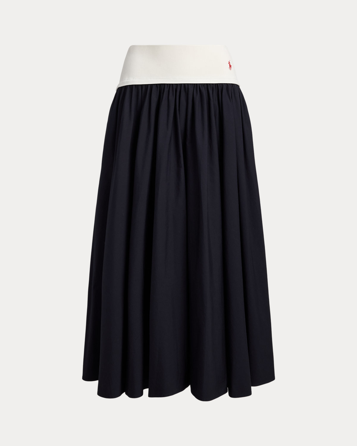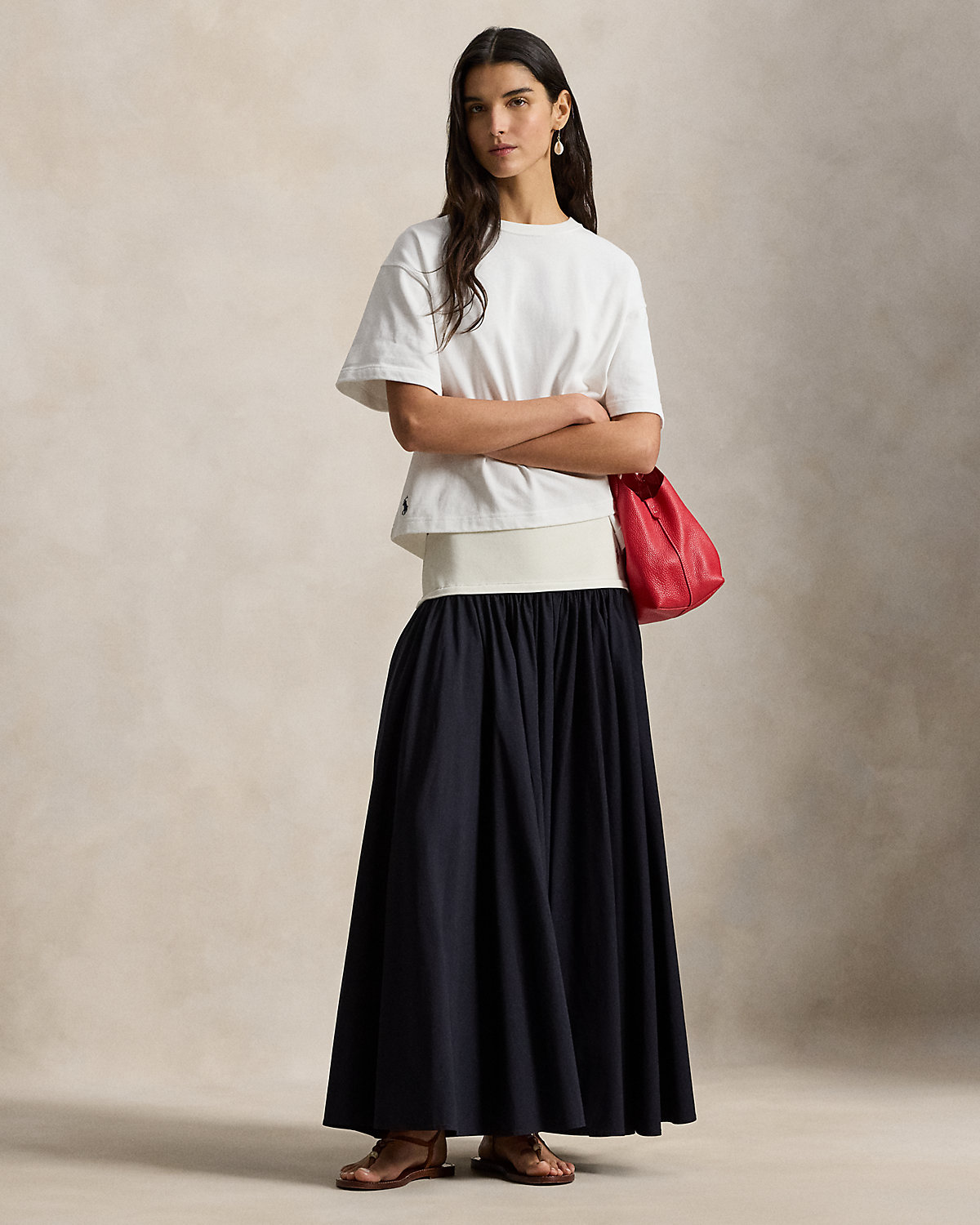Made with lightweight yarn-dyed cotton, this A-line skirt is cut for a fluid drape and is garment-washed for softness. Its wide, contrasting elasticized waist is accented with our signature embroidered Pony.